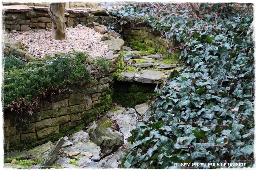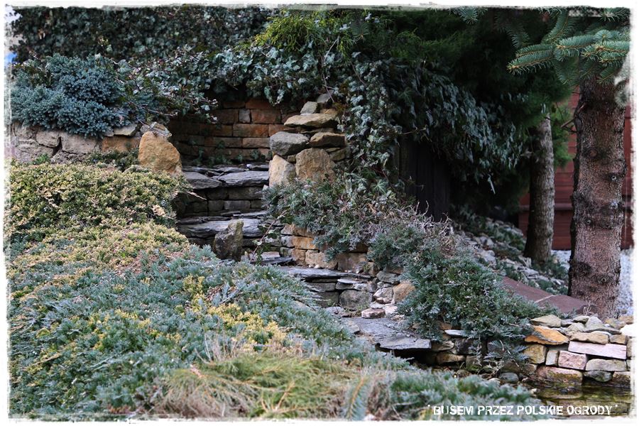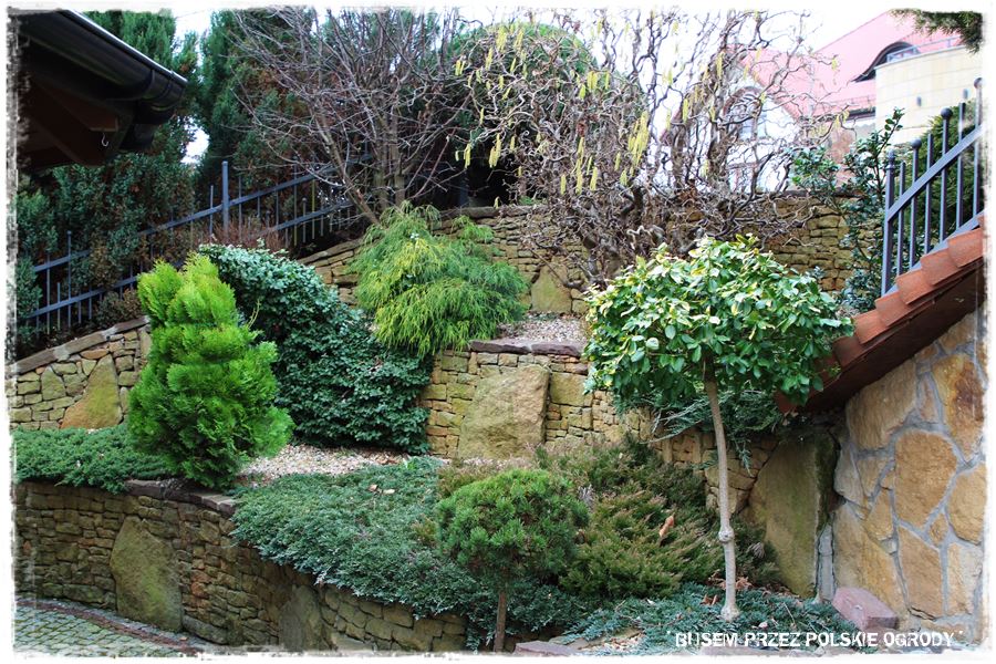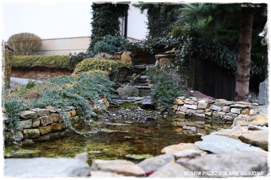 Super oryginalnym rozwiązaniem, możliwym również dzięki opadającemu terenowi jest kamienny strumień (obecnie w okresie zimowym wyłączony), który w górnej części płynie po kamiennej kaskadzie wkomponowanej w kamienne rabaty,
