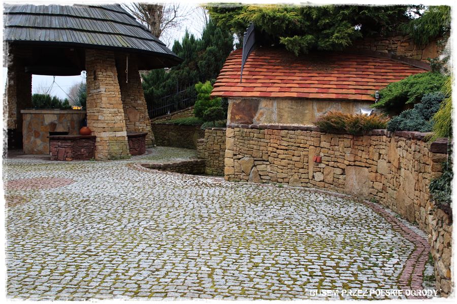 Wszystkie pokazane wcześniej kamienne elementy, stanowią dopiero wstęp do tego, co jest głównym, najciekawszym elementem tego ogrodu. To duży, kamienny dziedziniec,