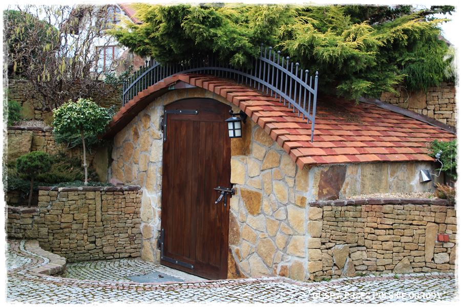 oraz położona nieco niżej, efektowna, kamienna piwniczka, stanowiąca polową kuchnię i winiarnię.