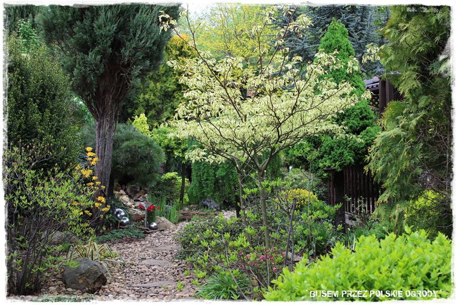 I właśnie te wyjątkowe rośliny, które występują tu licznie i w niezliczonej ilości odmian, to druga najbardziej charakterystyczna cecha tego ogrodu. Można się nawet pokusić o stwierdzenie, że to małe arboretum. Zresztą nie jest ono wcale bezpodstawne, bo jeśli posłucha się Właścicielki ogrodu, z jaką pasją i zaangażowaniem o nim opowiada, ile wiedzy ma do przekazania, do takich właśnie wniosków można dojść.