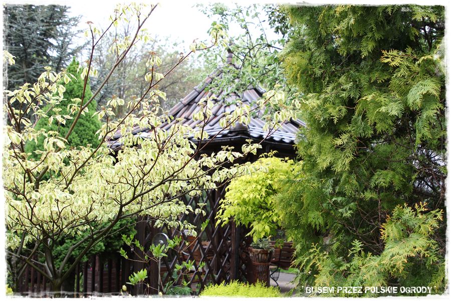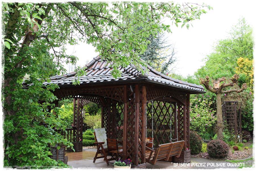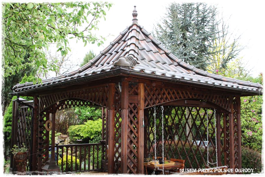 oraz okazała altana z dachem niczym w japońskim domku.