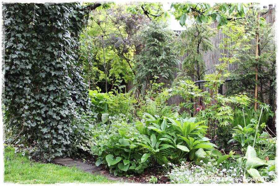 Z kolei boki ogrodu, pomiędzy ogrodzeniem, a budynkiem to właściwie tylko wąskie przejścia, jednak jak cała reszta, równie ciekawie obsadzone i zaaranżowane.