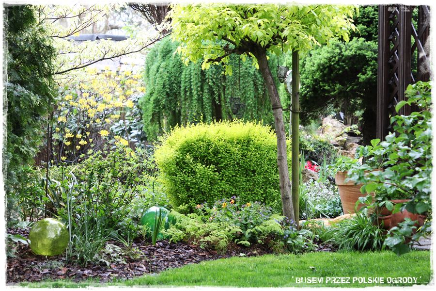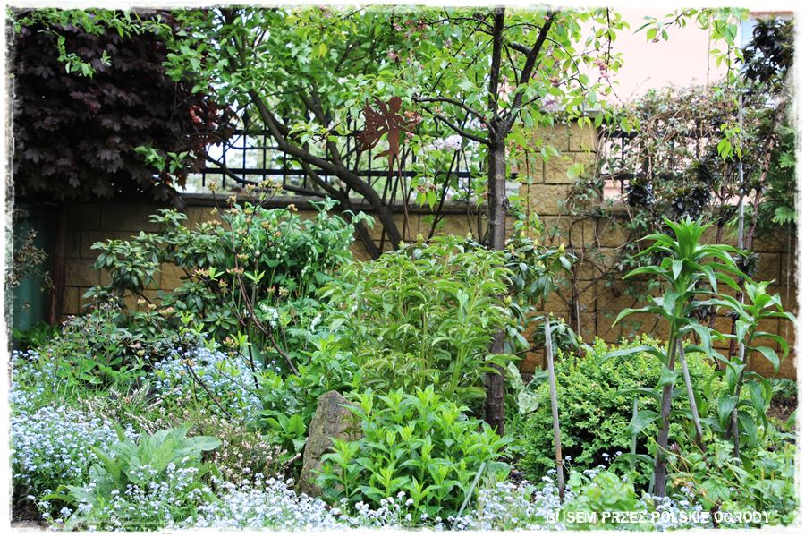 Siódmy odwiedzony ogród, jak już wspomniałem, położony jest w województwie dolnośląskim, na przedmieściach Wrocławia. To powoduje, że bezpośrednim sąsiadem jest niewielki lasek, który stanowi ładne tło i naturalne przedłużenie krajobrazu w tylnej części ogrodu.