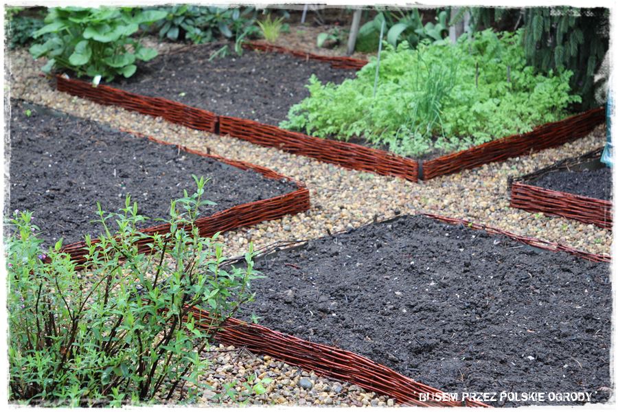 Bardzo oryginalnym elementem ogrodu, jest ukryty w tylnej części „wiklinowy warzywnik”. Wiklinowy dlatego, że urządzony jest w prostokątnych obszarach otoczonych wiklinowym płotkiem, które są bardzo praktycznym rozwiązaniem. Po pierwsze pasują do naturalnego stylu ogrodu, a ponadto wprowadzają ład i porządek, a jednocześnie ułatwiają uprawę. Chociażby łatwy dostęp do uprawianych warzyw.