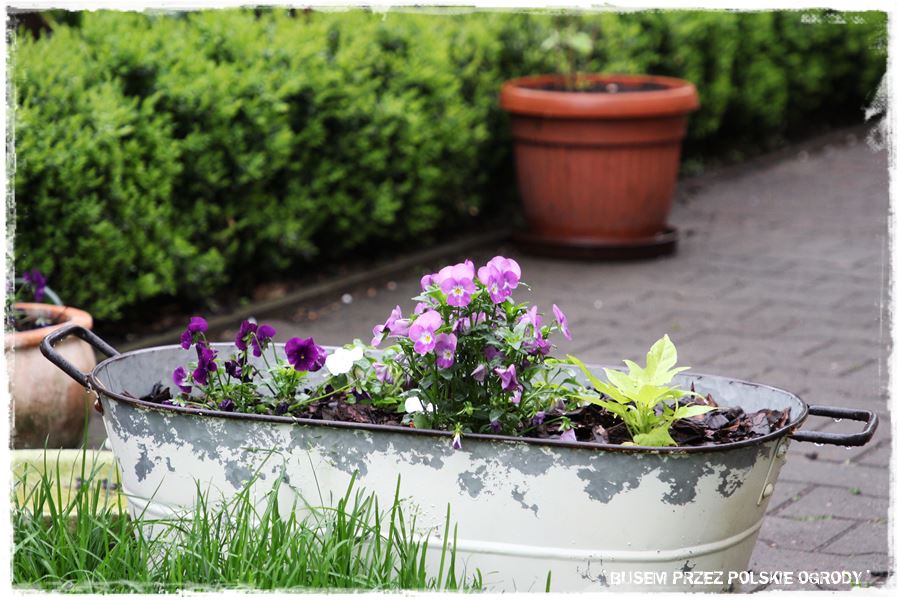 Zawsze będąc w ciekawych ogrodach, zachwyca mnie jeden element: donice i ładne kompozycje. Jestem pełen podziwu dla osób, które mają w ogrodzie mnóstwo rosnących roślin, a jeszcze zadają sobie dodatkowy trud i wykonują nasadzenia w donicach. Ale to właśnie świadczy o ich wyjątkowej pasji, co oczywiście ma miejsce również w przypadku Justyny.