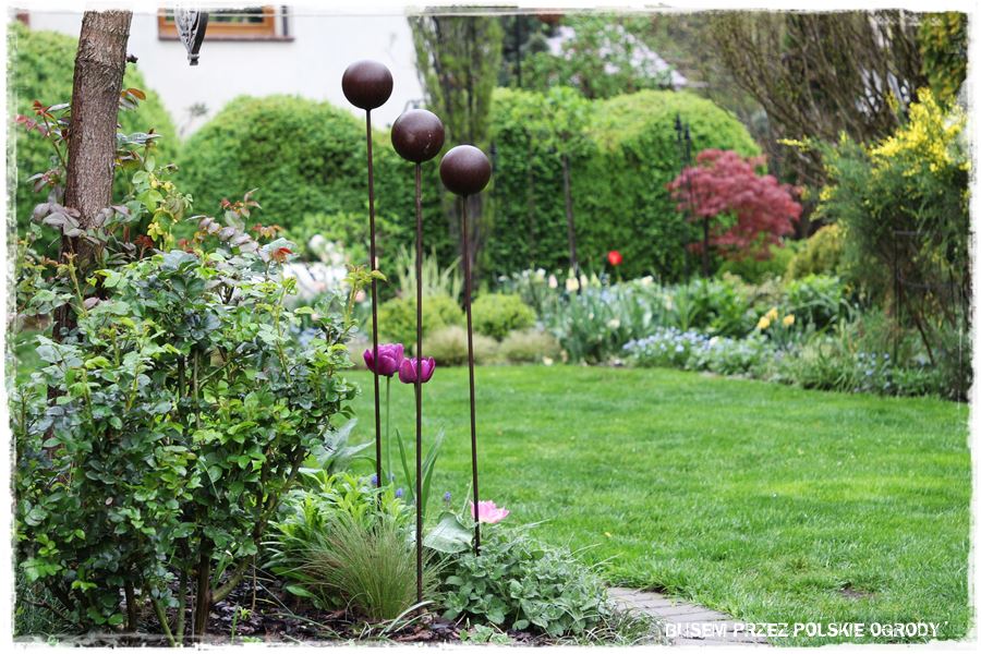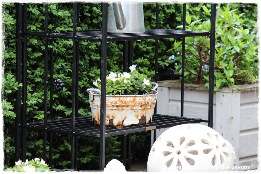 Wyjątkowe roślinne nasadzenia, doskonale uzupełniają liczne metalowe dodatki, które dosłownie porozmieszczane są po całym ogrodzie. Zdobią praktycznie każdą rabatę, dobrze komponując się z roślinami.