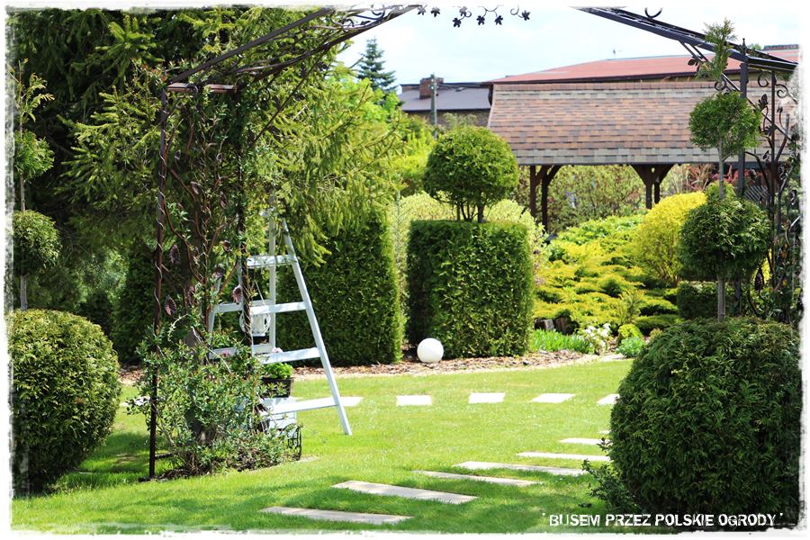 Jednak jak widzisz, nie jest to ogród swobodny, w takim ogólnym rozumieniu, w którym to rośliny „rządzą” na rabatach i wprowadzają trochę własne zasady. Tu wszystko jest pod kontrolą Właścicieli, a całość sprawia wrażenie wyjątkowego porządku. I to właśnie jest druga, charakterystyczna cecha tego ogrodu – całkowity ład i porządek, który sprawia, że ma się wrażenie, jakby było się w wielkim, ogrodowym salonie.