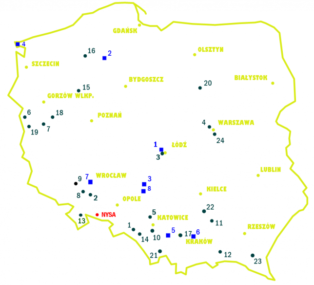 Kolor czerwony to tradycyjnie miejsce skąd wyruszyłem, a ten niebieski kwadrat z numerem 8, to właśnie lokalizacja ósmego ogrodu, położonego w województwie śląskim. Do pokonania miałem zatem niewielką odległość, około 140 kilometrów w jedną stronę. Na mapie widać również ciemnozielone kropki z numerami od 1 do 24, które obrazują wszystkie ogrody odwiedzone w sezonie 1 – 2018. Myślę więc, że to ciekawe uzupełnienie.