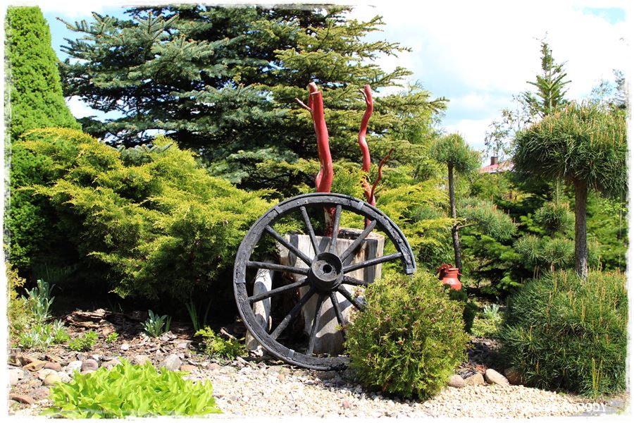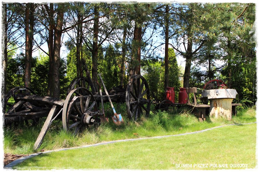 Poza wspomnianym skansenem, w ogrodzie jest mnóstwo innych, ciekawych staroci. Są porozmieszczane po całym terenie i tworzą różne, oryginalne kompozycje.
