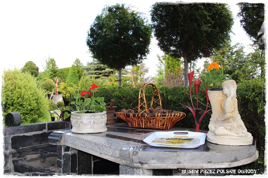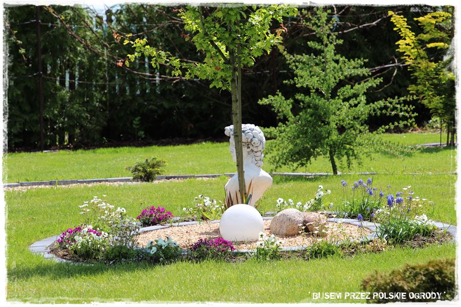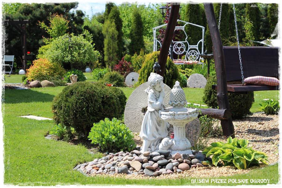 - Warto ogrody ozdabiać. Do roślin dodawać inne elementy, ciekawie je komponując, sprawiając jednocześnie, że całość jest ciekawsza w odbiorze. Tak jak w tym ogrodzie gdzie ciekawie wyglądają np. liczne ozdoby,