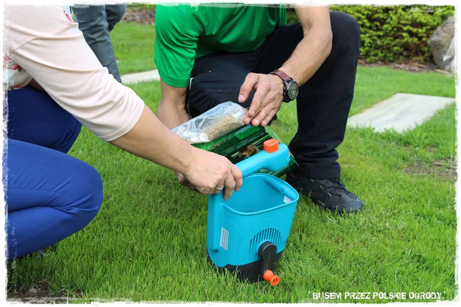 Jak w każdym z odwiedzonych ogrodów, tak i w tym przyszedł czas na wypróbowanie kilku produktów od Partnerów. Tak aby trochę się pobawić, a przy okazji zrobić coś pożytecznego, do tego na świeżym powietrzu i w ogrodzie. Tym bardziej, że tegoroczna edycja projektu ma w swojej formule coś takiego, że poza produktami, które zostawiam, mam ze sobą trochę dodatkowych, tak aby zaprezentować różnego rodzaju ciekawostki i nowości na rynku.
