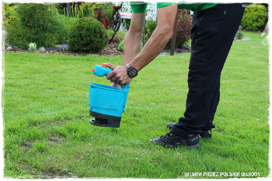 Dodatkowo zrobiliśmy małą dosiewkę w miejscach ubytków trawnika.