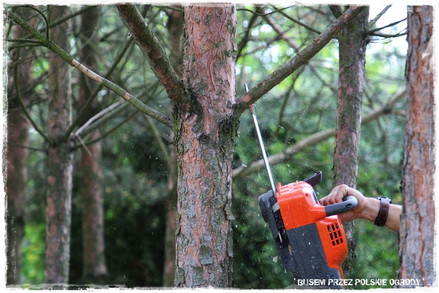 Po pracach związanych z sadzeniem, przyszedł czas na kilka innych spraw gospodarczych oraz pielęgnacyjnych. A zatem w ruch poszły narzędzia i maszyny, co mnie osobiście cieszy najbardziej. Na początek kilka przycinek suchych gałęzi, we wspomnianym, sosnowym, ogrodowym skansenie. Oczywiście z użyciem akumulatorowej piły.