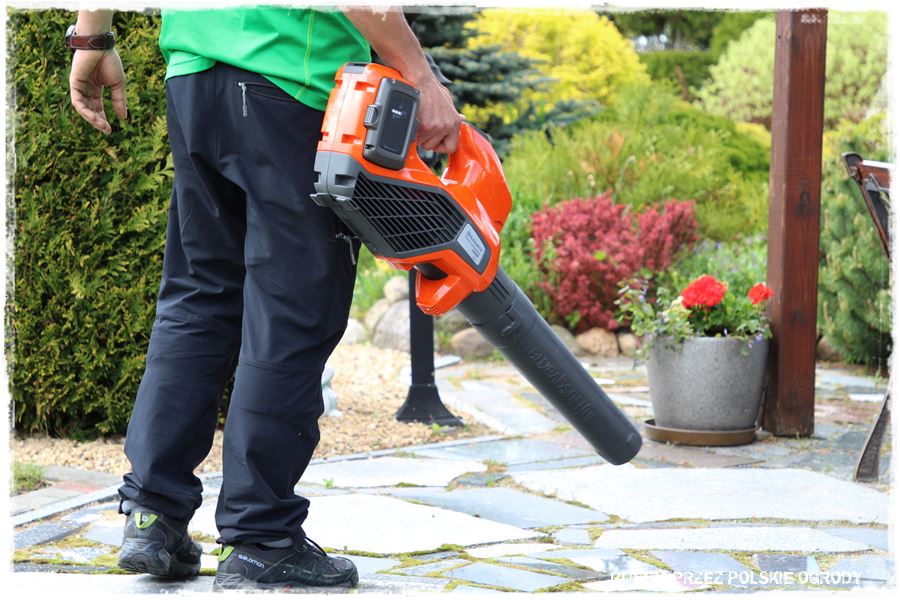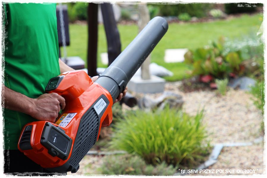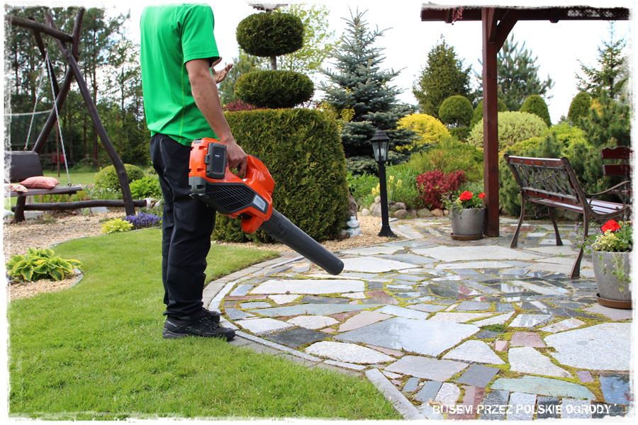 Następnie, używając tej samej baterii, akumulatorową dmuchawą pozamiataliśmy tą oryginalną, marmurową nawierzchnię pod altaną.