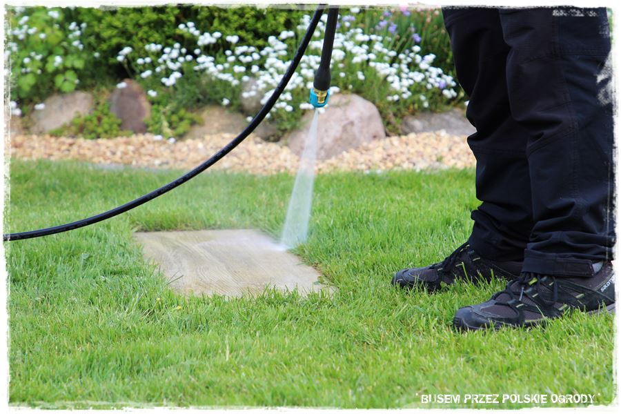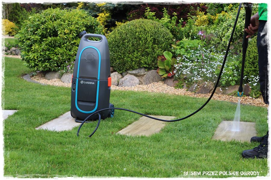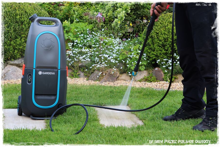 A skoro byliśmy przy sprzątaniu, nie wypadało nie wypróbować myjki akumulatorowej, która doskonale sprawdziła się przy myciu betonowych płyt trawnikowych.