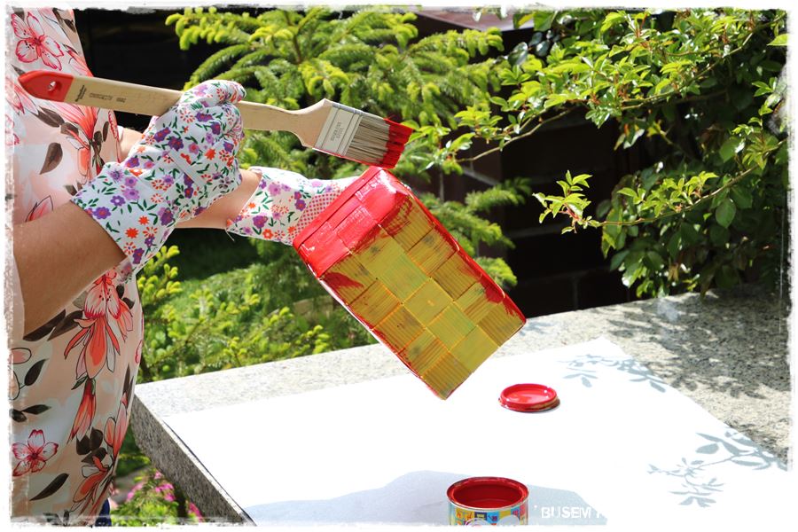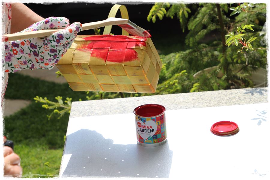 Podczas prac nie mogło zabraknąć także malowania. I tak się stało, za sprawą czerwonej farby, która efektownie pokryła ozdobny koszyczek.