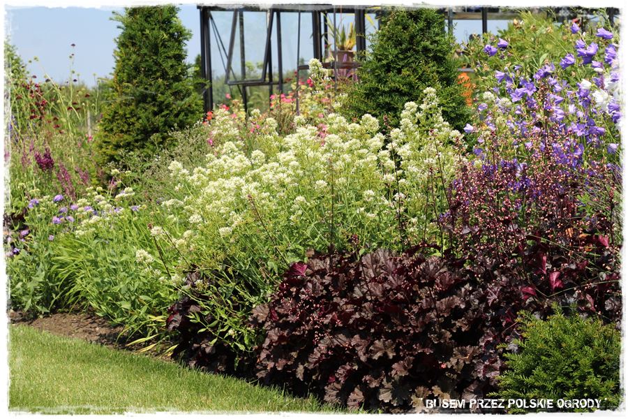 Wydzielone rabaty mają zdecydowanie angielski charakter nasadzeń, czyli dużo swobodnych nasadzeń i mnóstwo kwitnących gatunków.