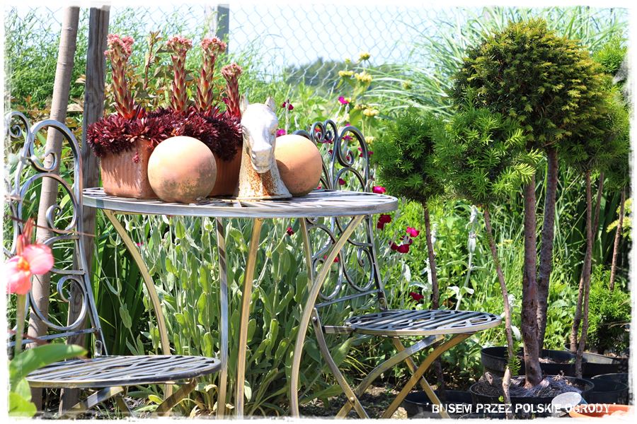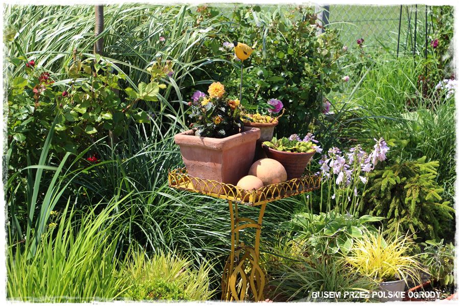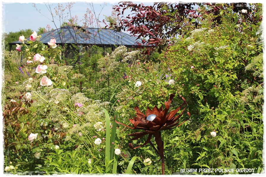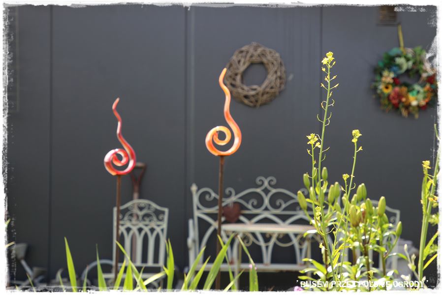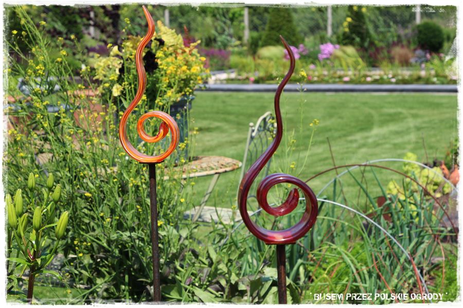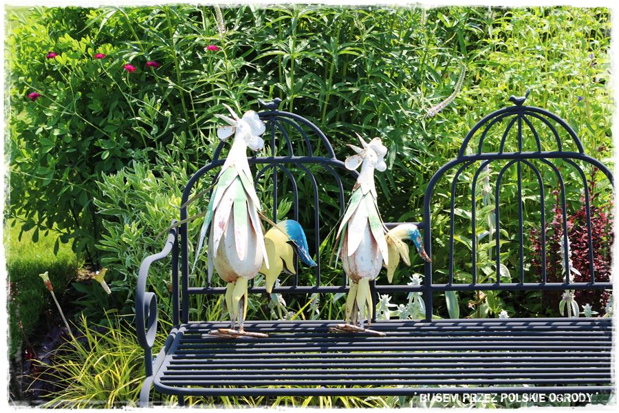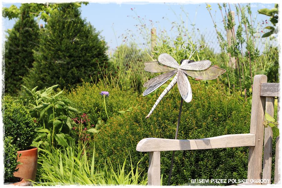 którym dzielnie towarzyszą, pięknie wkomponowane w rabaty dekoracje z metalu i ceramiki.