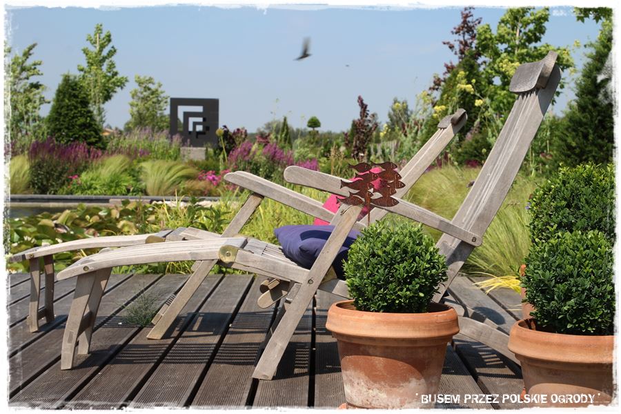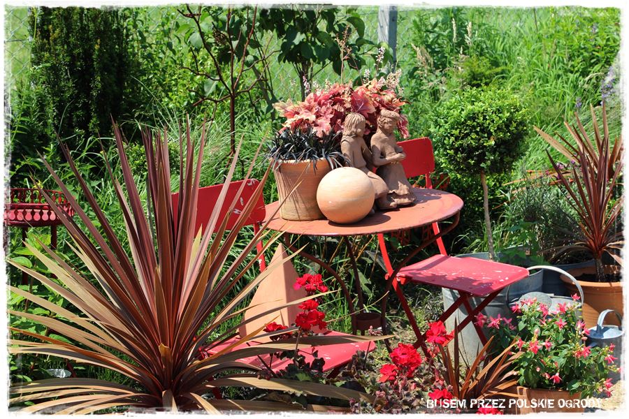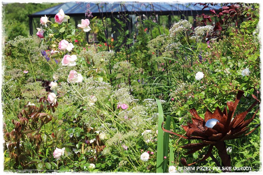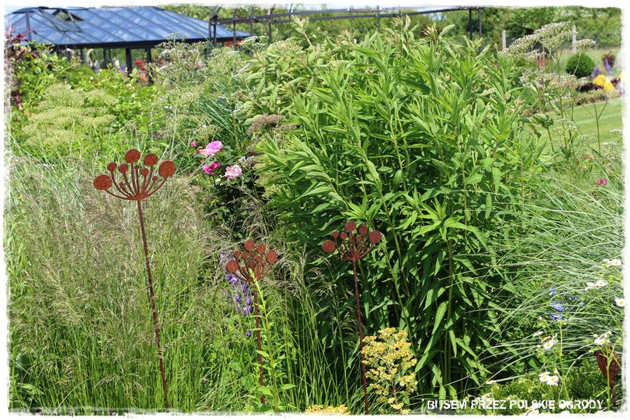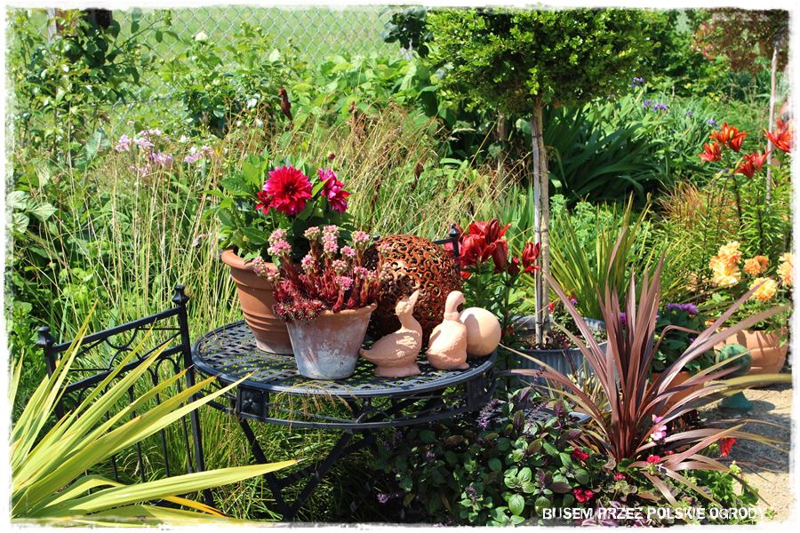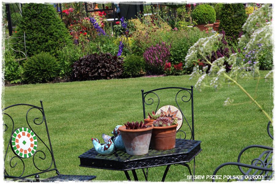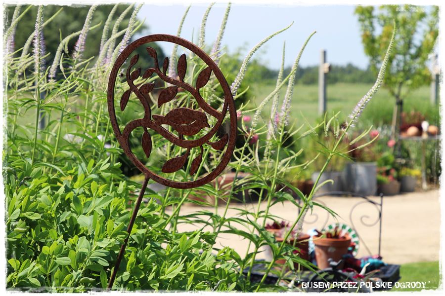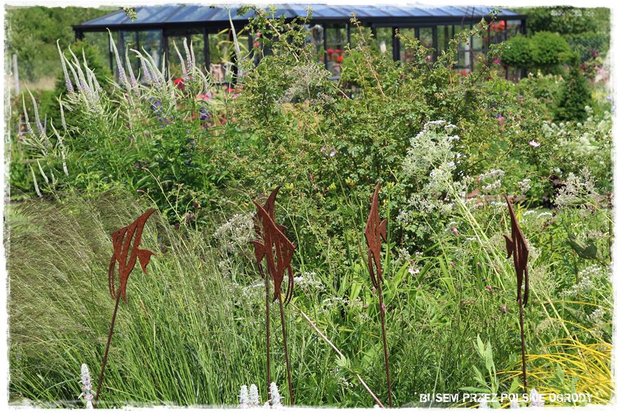 którym dzielnie towarzyszą, pięknie wkomponowane w rabaty dekoracje z metalu i ceramiki.