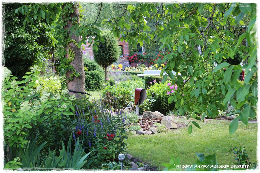 Zatem po kolei. Ogród jak już wiesz jest duży, gęsto obsadzony i można podzielić go na odrębne strefy, z których każda kryje w sobie coś ciekawego. Najstarszą część stanowi położony najbliżej budynku trzydziestoletni „zagajnik”, w którym główną rolę odgrywa duży, dający sporo cienia orzech.