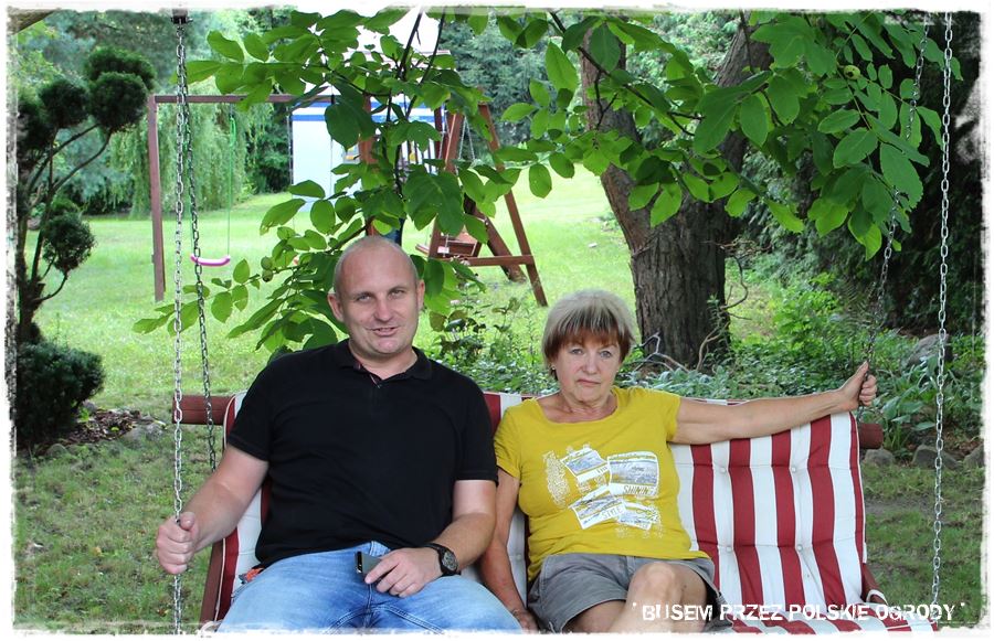 Wracając do wizyty, jak zawsze, bus zaparkował w ogrodzie, a ja miałem możliwość przywitać się z przemiłymi Właścicielami – Bogusią i Waldkiem. Jeśli czytasz uważnie wszystkie relacje, zauważyłeś pewnie, że to pewnego rodzaju schemat, który staram się powielać. Z drugiej strony trudno sobie wyobrazić, aby ten charakterystyczny bus do ogrodu nie wjechał, a ja nie przywitał się z Gospodarzami. Tym bardziej, że mam szczęście trafiać na wyjątkowo miłe, otwarte i gościnne osoby, co miało miejsce również w tym przypadku.