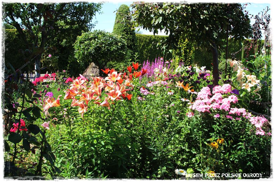 dochodzi się do właściwego ogrodu. Jego centralnym elementem jest duża, kolorowa rabata,