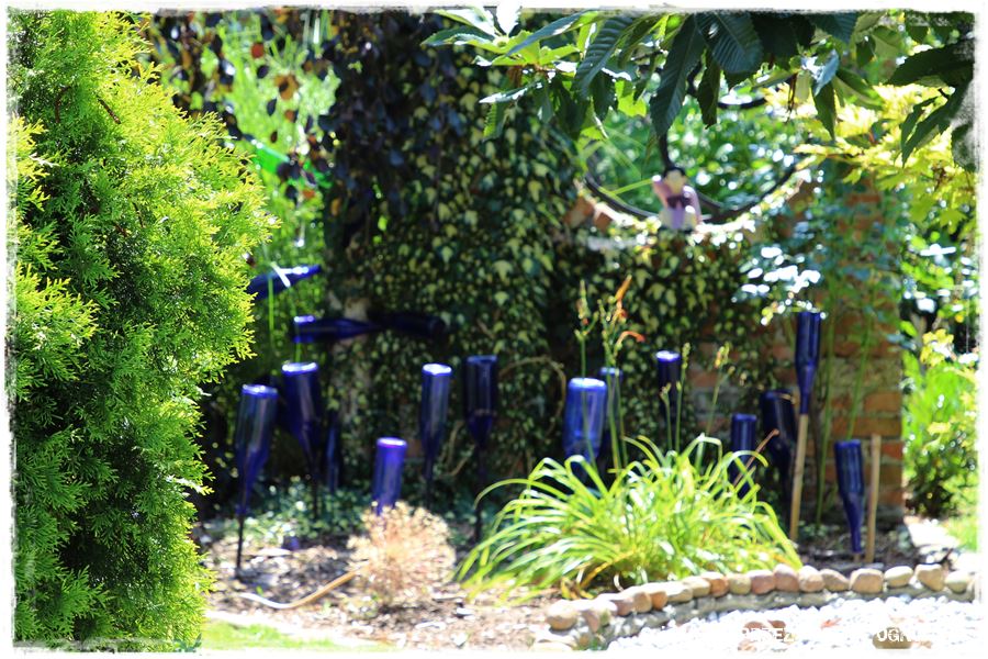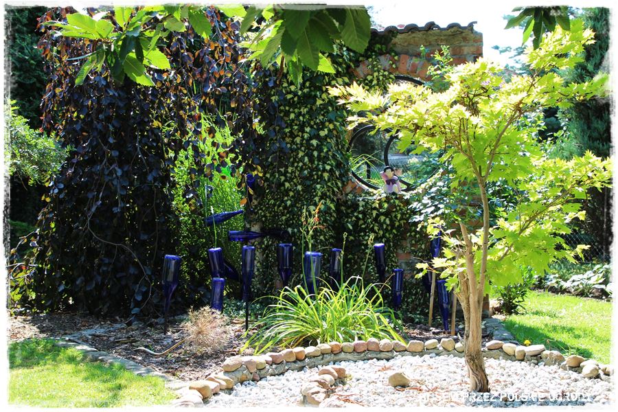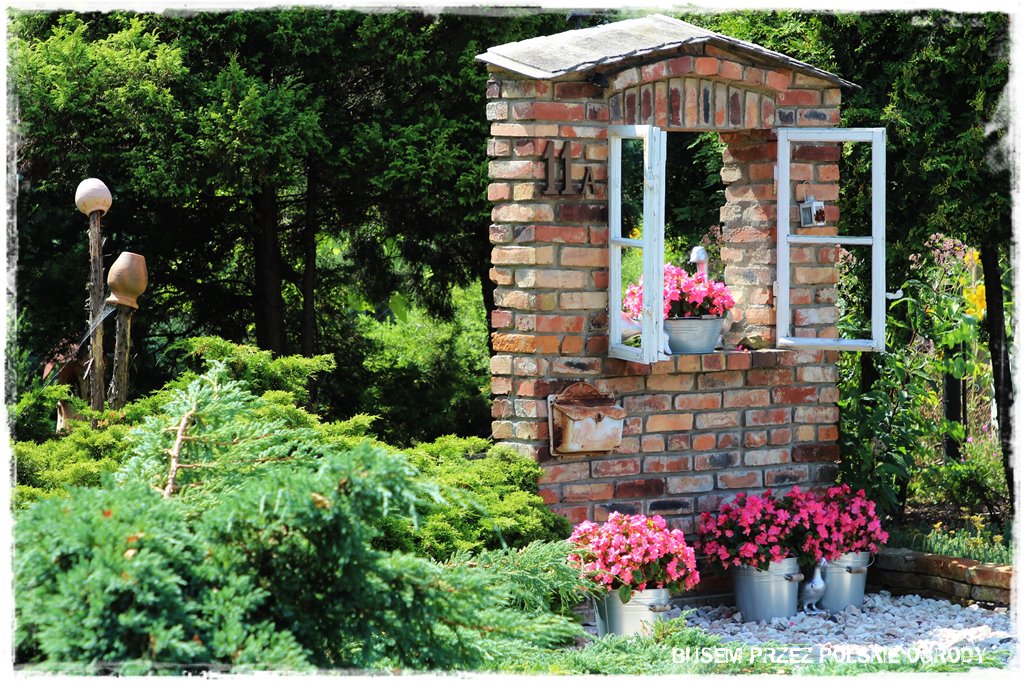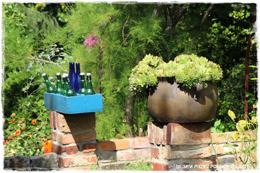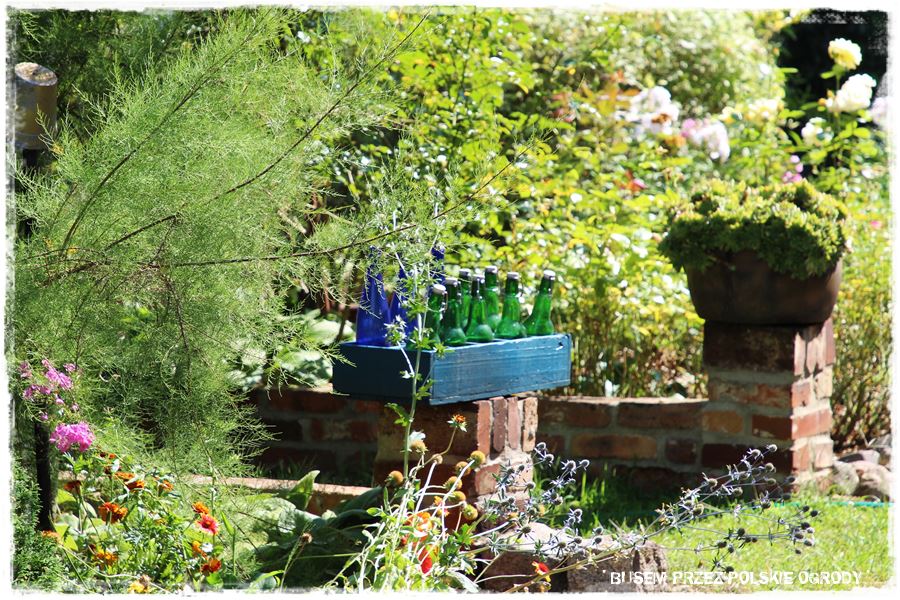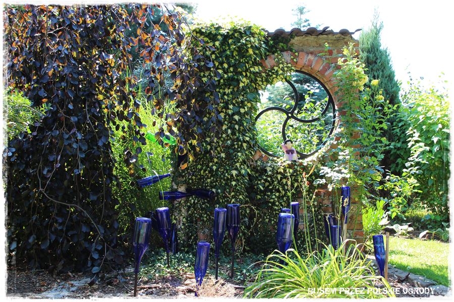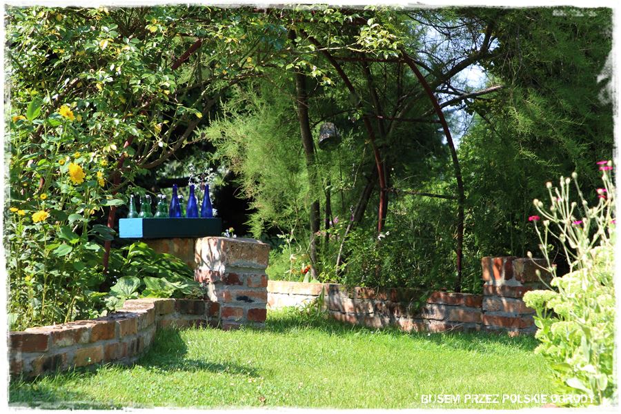 Jak pewnie już wiesz z poprzednich relacji, każdy z odwiedzonych ogrodów staram się na wstępie jakoś nazwać i zatytułować. Tak, aby na początku nastawić Cię na to, czego możesz się po nim spodziewać. Innymi słowy, staram się znaleźć jakąś główną cechę i wyróżnik danego miejsca, który zdecydowanie odróżnia go od pozostałych. I tak jest również w tym przypadku. A wyróżnikiem tego miejsca są oryginalne ceglane budowle oraz urocze dekoracje ze starych butelek. Może nie dominują w tym ogrodzie, ale stanowią na tyle wyraźne akcenty, że to właśnie im postanowiłem nadać główne znacznie.