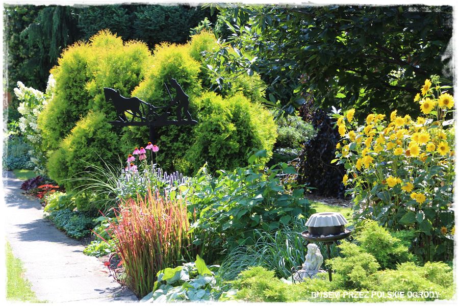 Od pewnego czasu moje ogrodowe relacje staram się upraszczać tzn. zdecydowanie mniej w nich pisać. Tak będzie i tutaj, gdzie zdjęcia wyraźnie biorą górę nad komentarzem. Co więc wartego jest podpatrzenia, a zarazem stanowi ważne elementy tego ogrodu? Jest tego trochę, bo to ogród zróżnicowany i kryjący w sobie wiele elementów.