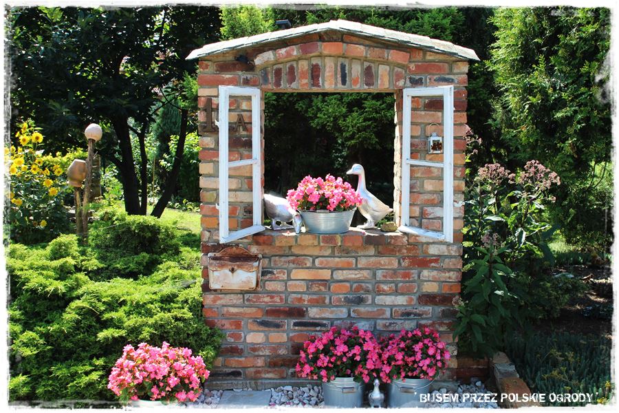 Warto ogrody ozdabiać. Tak jak Gabrysia, która nie dość, że stawia na liczne dekoracje, to jeszcze decyduje się oryginalne aranżacje, jak chociażby ceglane budowle.