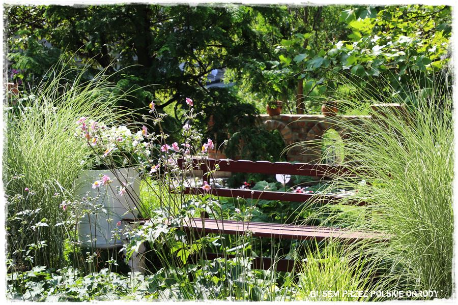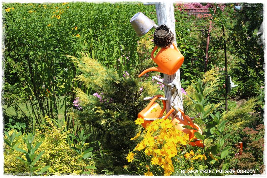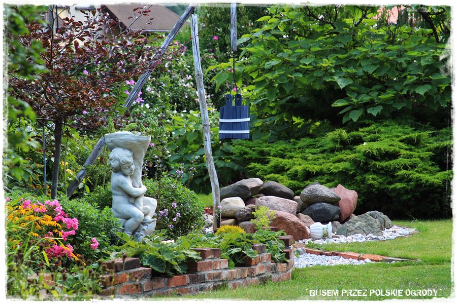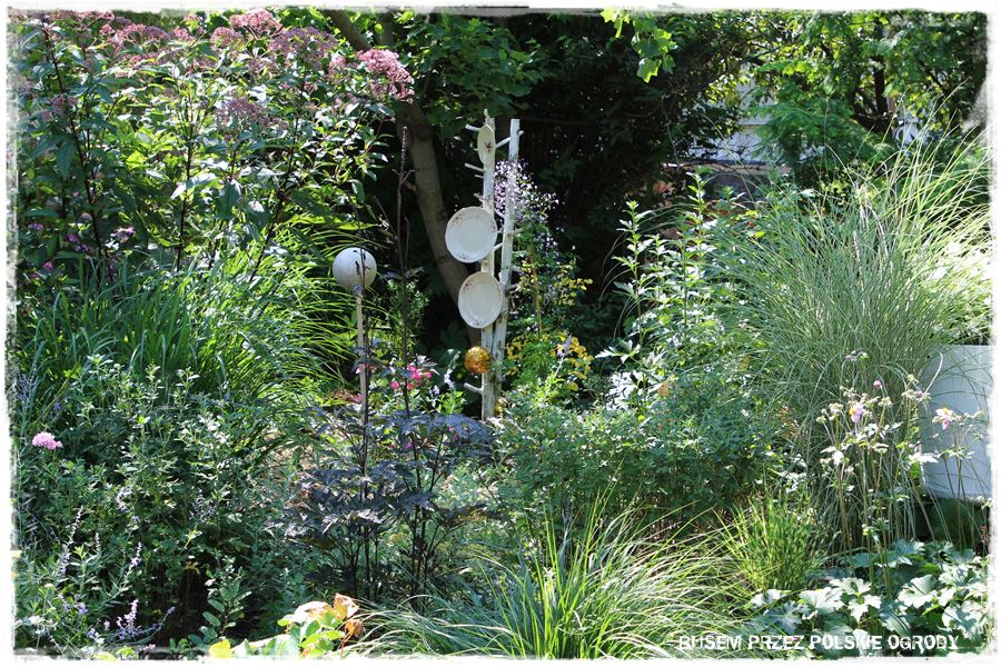 I właśnie to piękno i pracę w tym ogrodzie widać na każdym kroku. Zachwyca luźnym sposobem zagospodarowania, wijącymi się rabatami, w których rosną dobrze skomponowane i zestopniowane rośliny. Ponadto zaciekawia licznymi dekoracjami, wśród których szczególnie zachwycają aranżacje z cegły i starych butelek. To oryginalne pomysły warte podpatrzenia i przeniesienia do innych ogrodów.