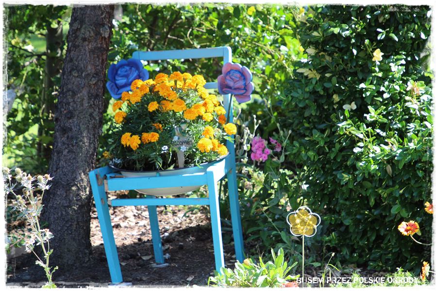 Jednak ogród Gabrysi to nie tylko stara cegła i butelki. W zakresie dekoracji to również cały szereg innych elementów, umiejętnie wkomponowanych w roślinne aranżacje. Spójrz na wybrane z nich, być może coś wzbudzi Twoją uwagę…
