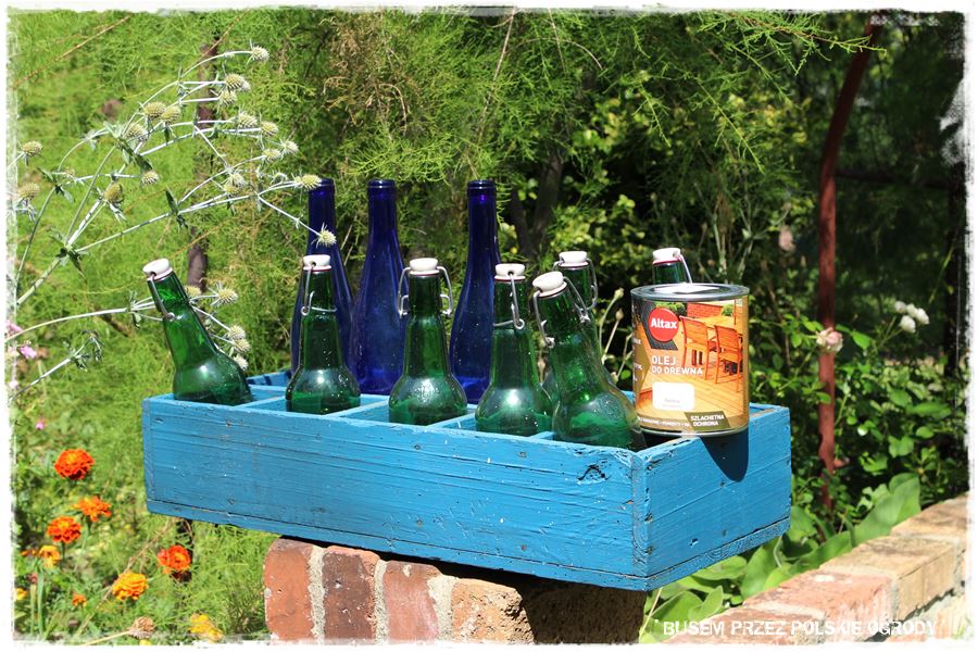 Drugi charakterystyczny element to stare butelki tworzące pomysłowe dekoracje.