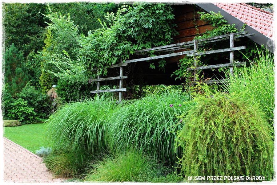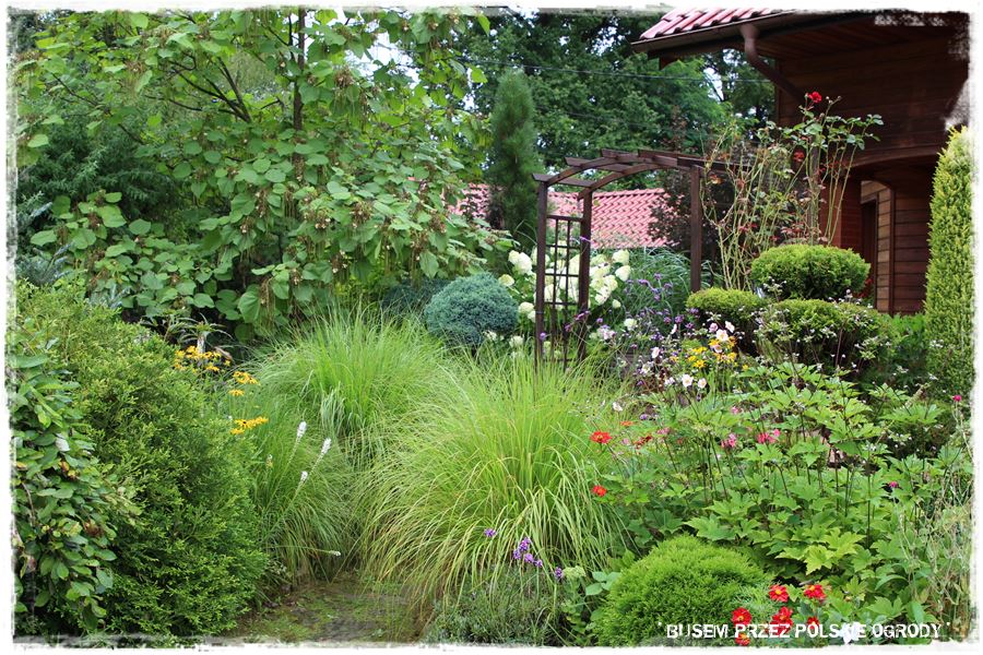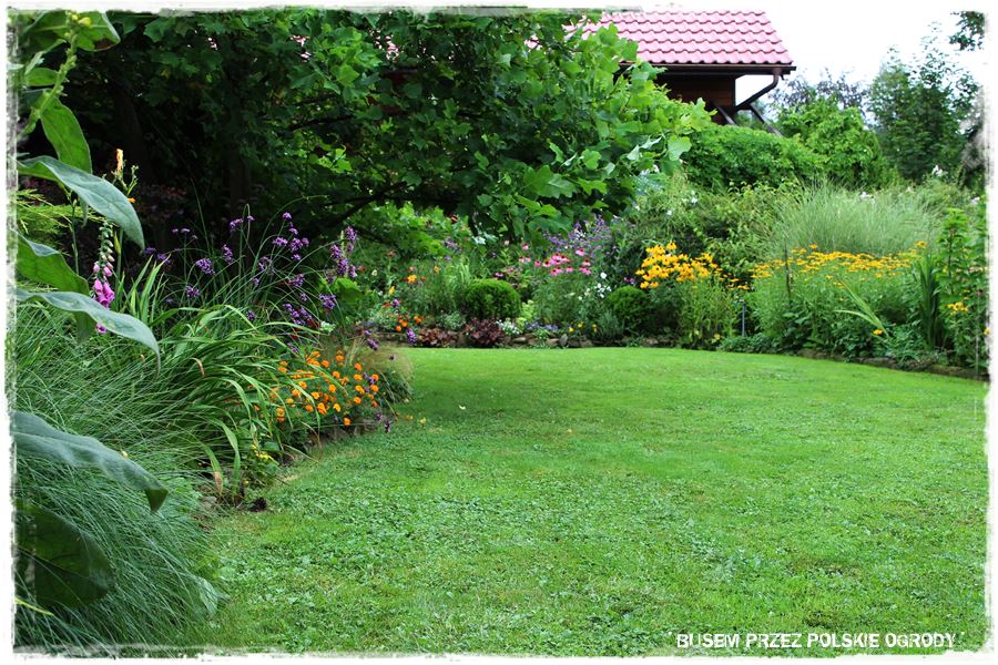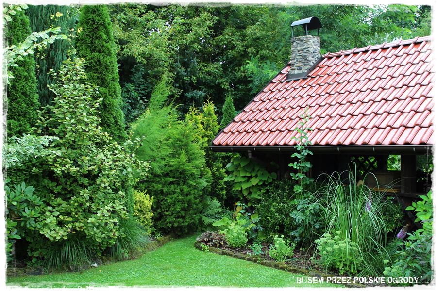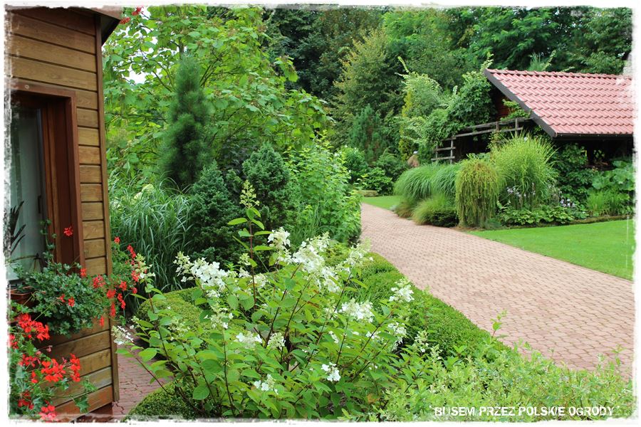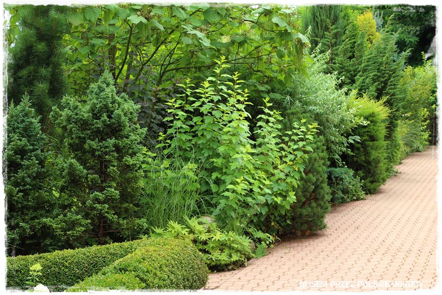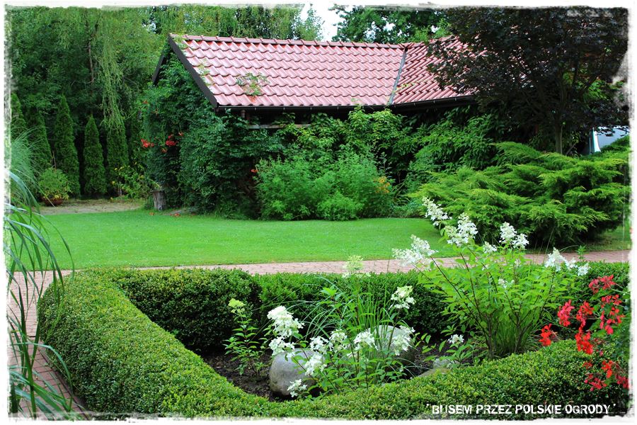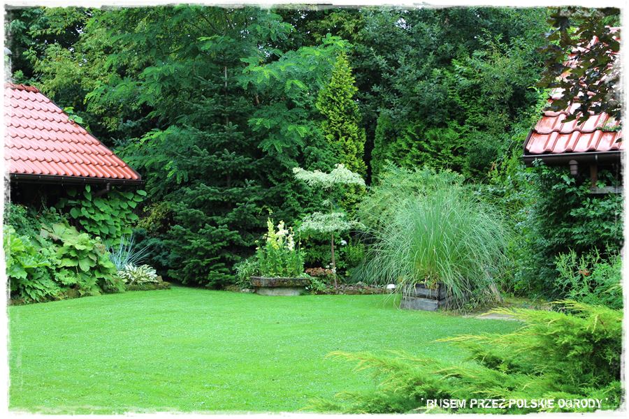 Cały ogród po obwodzie jest również gęsto obsadzony, przez co także wycina się z otoczenia i tworzy samodzielny, osłonięty obszar.