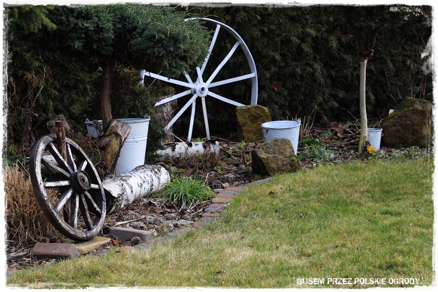 Mnóstwo fajnych elementów jak ten murek, metalowe ptaki czy serce, które jesienią w czerwieni jest wyjątkowe…. Coś pięknego.