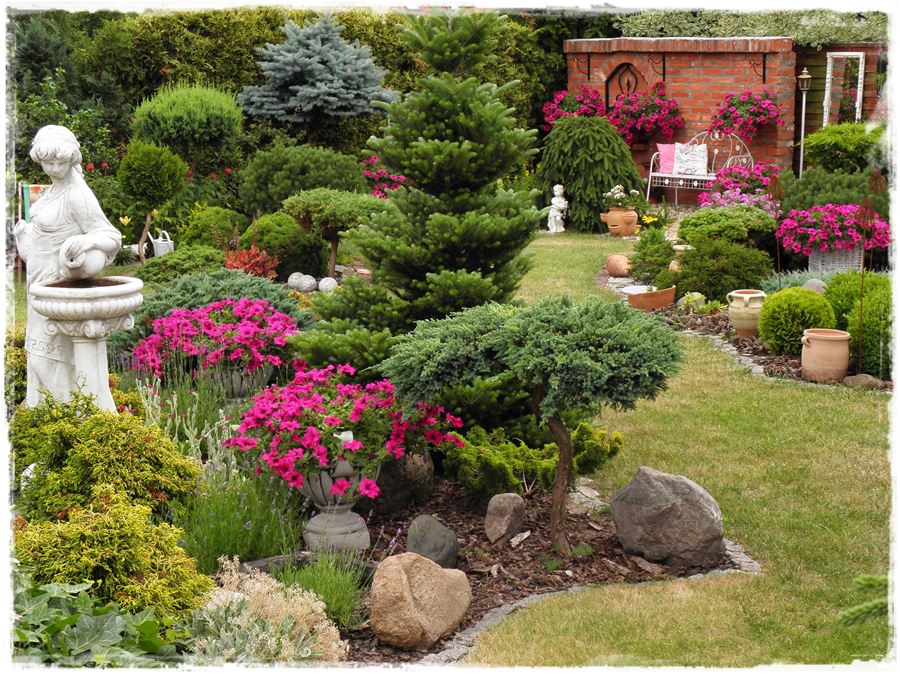 Przede wszystkim chyba przekonanie, że dobierając rośliny do ogrodu warto zrobić to tak, aby zdobiły ogród przez okrągłe 12, a nie tylko 6 czy 7 miesięcy. Aby to osiągnąć, w głównej mierze trzeba postawić na rośliny iglaste, które powinny stworzyć główny szkielet ogrodu. Wszystkie inne rośliny, w szczególności liściaste, kwitnące itd. powinny być uzupełnieniem iglastych, umiejętnie wkomponowanym pomiędzy nie. Takie podejście gwarantuje to, że nawet w okresie bezlistnym, ogród nie jest pusty, bo ‘wypadają’ z niego jedynie niektóre pozycje, ale odpowiednio wkomponowane pomiędzy rośliny, które swojego uroku nie tracą. Stąd ogród nie pustoszeje, nie wygląda na ‘martwy’ czy niezagospodarowany.