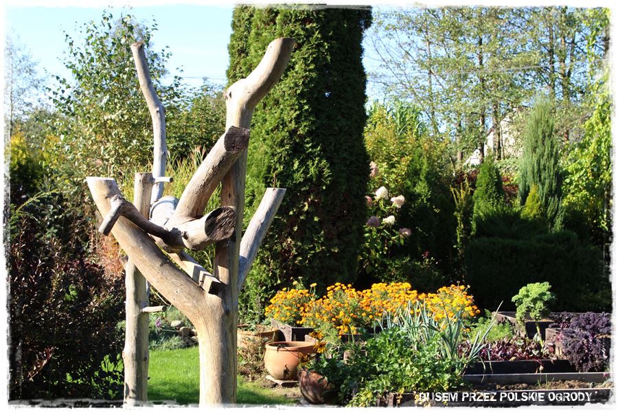 Ogród Marty to również królestwo prostych, starych, w większości własnoręcznie wykonywanych dekoracji,