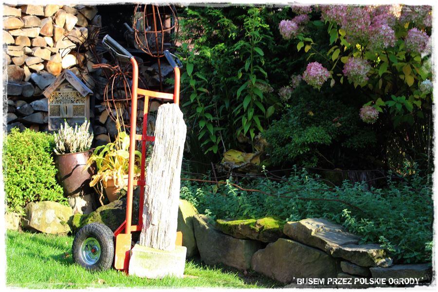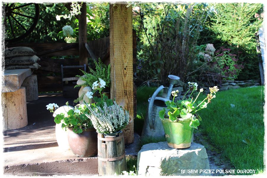 Od pewnego czasu moje ogrodowe relacje staram się upraszczać tzn. zdecydowanie mniej w nich pisać. Tak będzie i tutaj, gdzie zdjęcia wyraźnie biorą górę nad komentarzem. Co więc wartego jest podpatrzenia, a zarazem stanowi ważne elementy tego ogrodu? Jest tego trochę, bo jak na ogród rustykalny przystało, ogród Marty bogaty jest w dekoracje i elementy zagospodarowania, kryjący w sobie wiele ciekawostek.