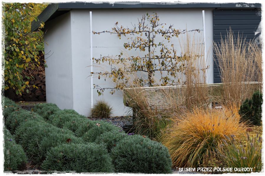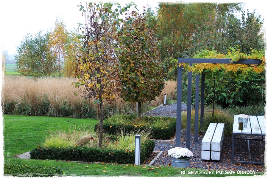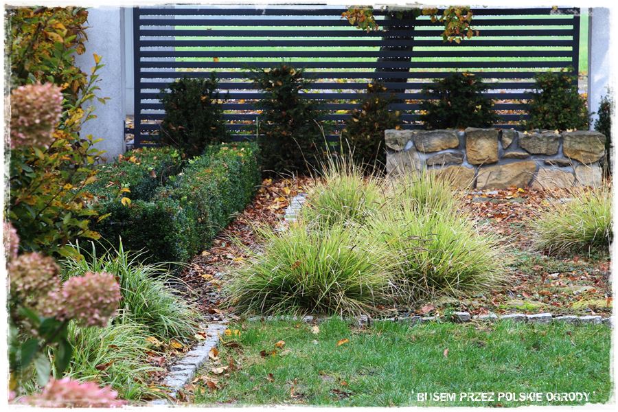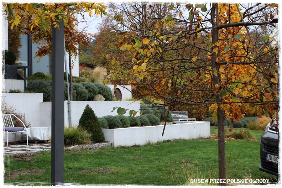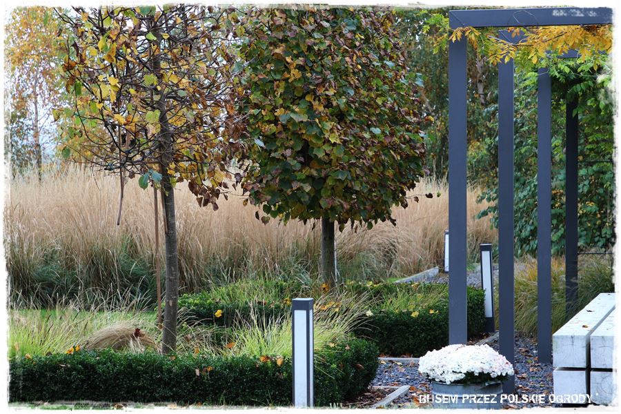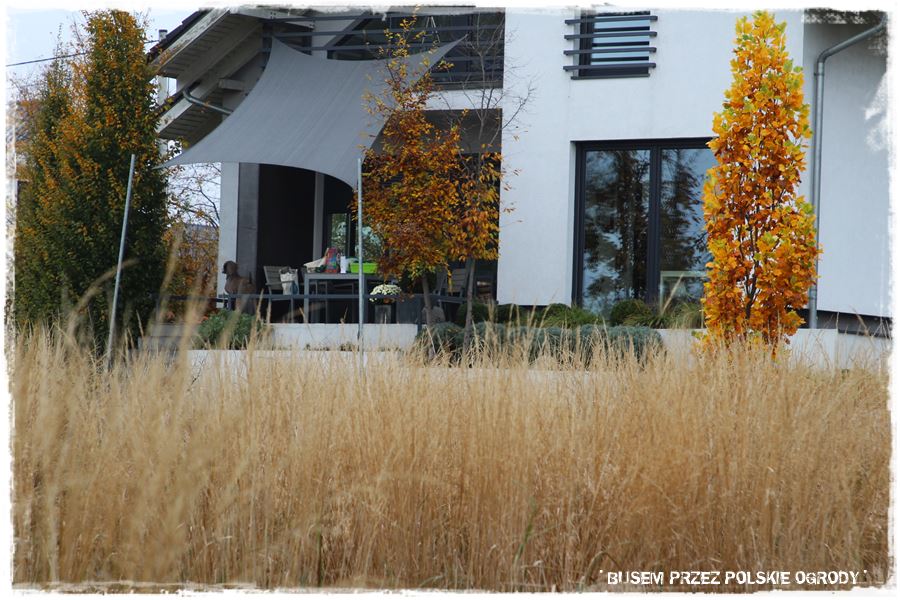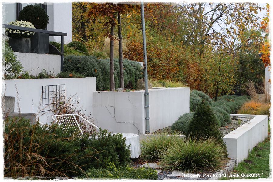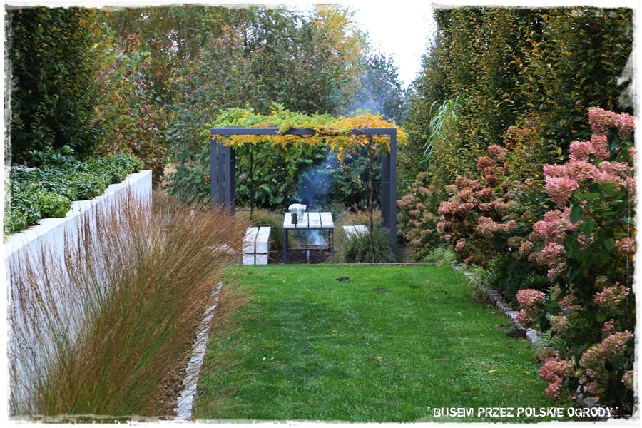 Od pewnego czasu moje ogrodowe relacje staram się upraszczać tzn. zdecydowanie mniej w nich pisać. Tak będzie i tutaj, gdzie zdjęcia wyraźnie biorą górę nad komentarzem. Co więc wartego jest podpatrzenia, a zarazem stanowi ważne elementy tego ogrodu? Jest tego trochę, a jak na ogród trawiasty przystało, ogród zachwyca zarówno trawami, jak i ciekawymi elementami zagospodarowania. Jest to zdecydowanie ogród nowoczesny, w którym architektura nowoczesnego budynku, łączy się z nowoczesnym urządzeniem ogrodu.