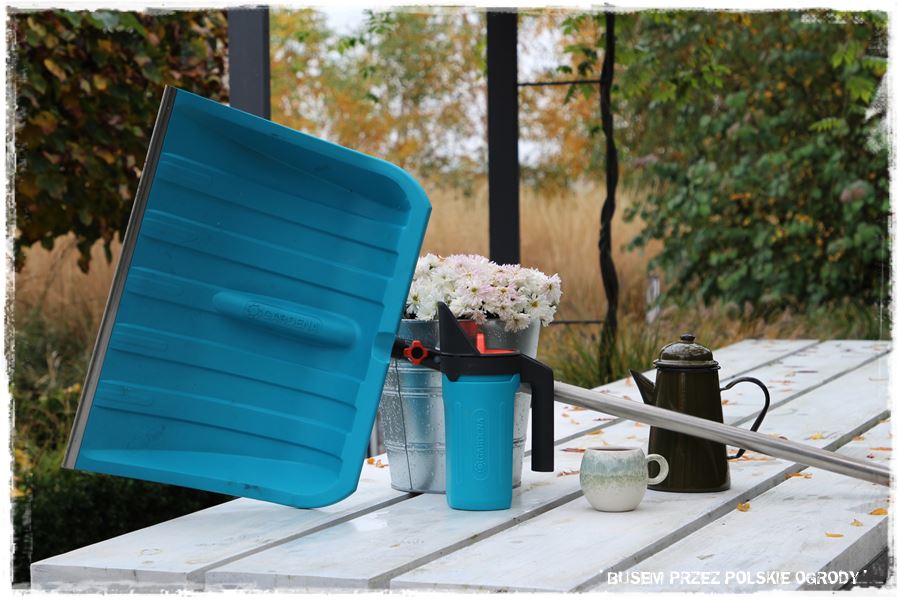 łopata do śniegu i „siewnik” do posypywania nawierzchni solą od marki Gardena