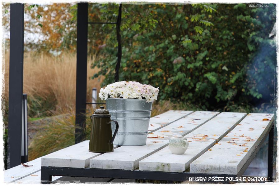Przede wszystkim, jak w każdym odwiedzonym ogrodzie, niezwykle miłe przyjęcie. To pozwala mi na fajną pracę i swobodne zbieranie materiałów zdjęciowych. Po drugie niebywała pomysłowość Gospodarzy w urządzeniu swojego ogrodu, w którym w sposób perfekcyjny połączyli nowoczesność ze starymi elementami i nutą lekkości, jaką wprowadzają trawy ozdobne. Muszę też dodać, że wszystko, łącznie nawet z budową murów wykonali sami, a jeśli czegoś nie dali rady, to i tak powstało według ich pomysłu. Na wielkie uznanie zasługuje też to, że to wyjątkowo spójny ogród trawiasty, w którym to właśnie trawy są roślinami wiodącymi, obecnymi dosłownie w każdym elemencie.