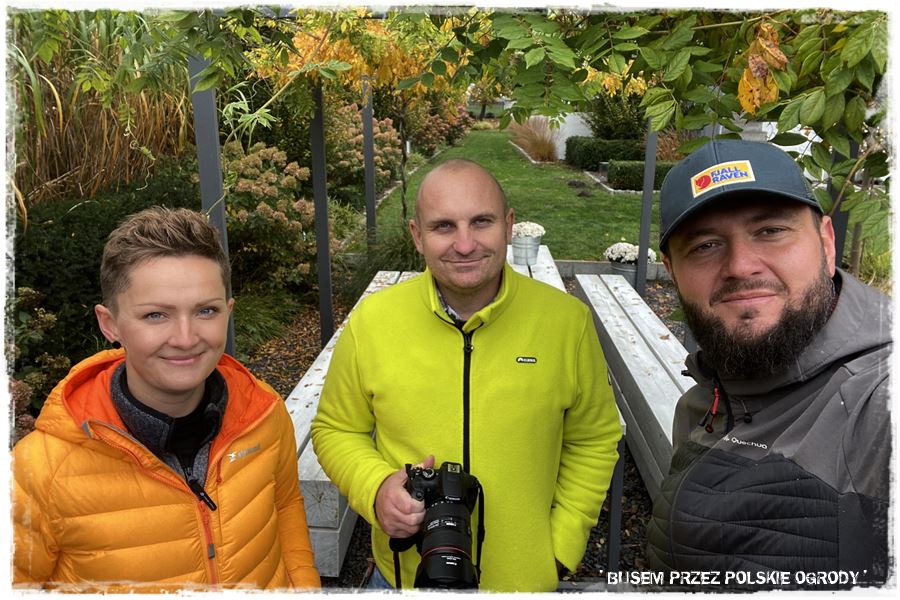 Wracając do wizyty, jak zawsze, bus zaparkował w ogrodzie, a ja miałem możliwość przywitać się z Gospodarzami tego terenu – Joanną i Krzysztofem.