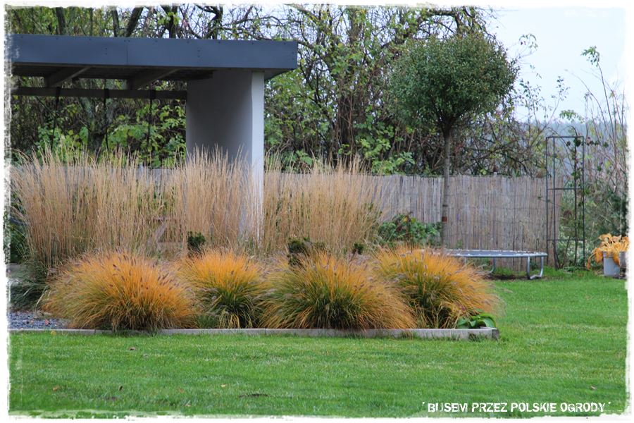 Aranżując ogród warto również dostosowywać go do otoczenia, czyli warunków w jakich zlokalizowana jest działka. Tak jak w tym przypadku, gdzie ta lekkość traw wkomponowała go w naturalny, otwarty krajobraz,