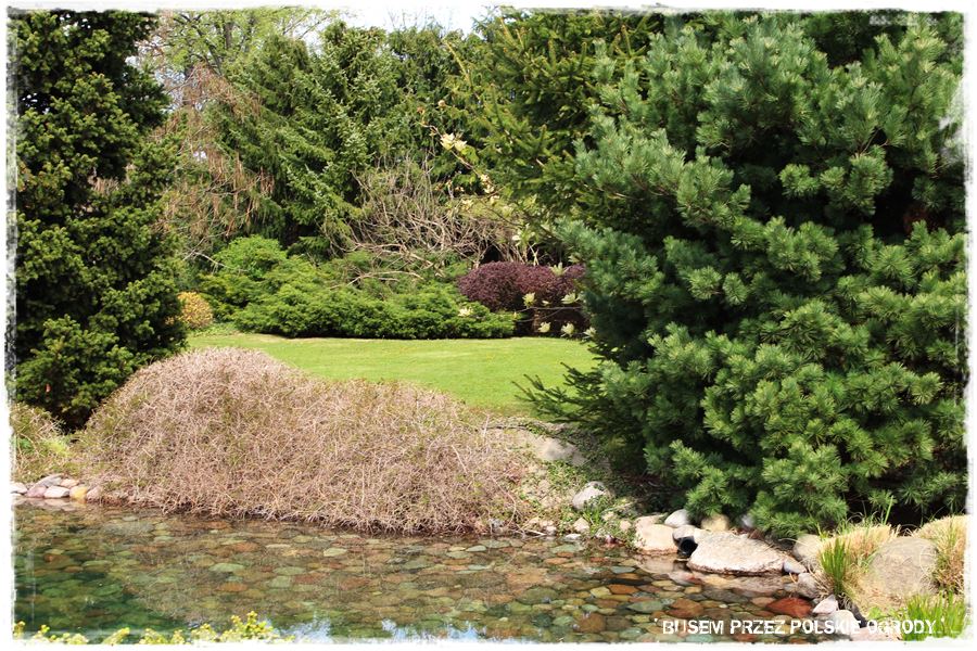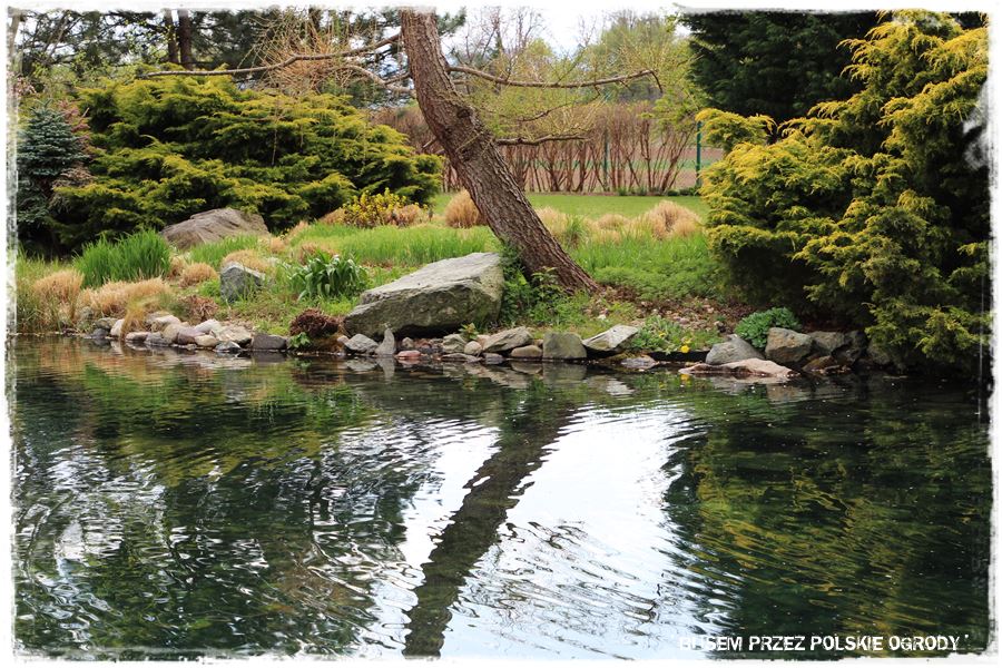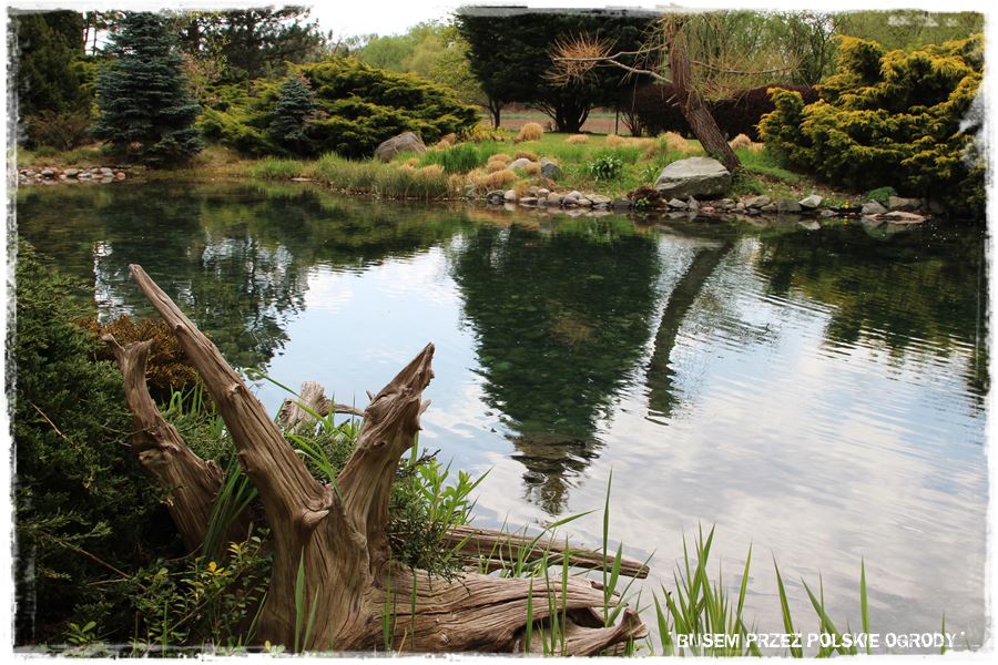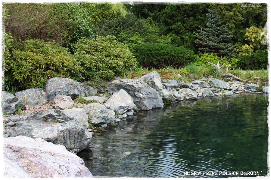 Staw ozdobny otacza kamienisty brzeg, w którym można znaleźć zarówno urokliwe korzenie,