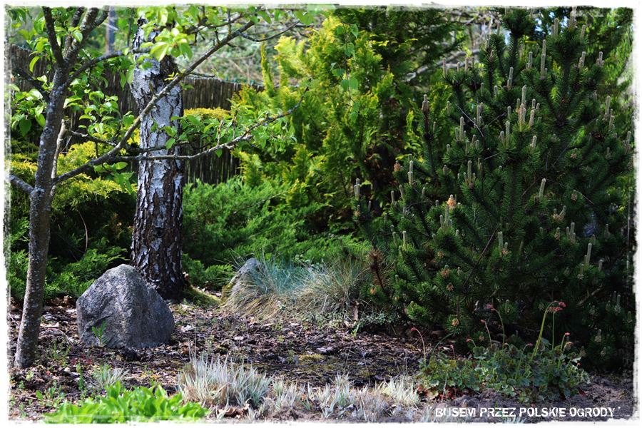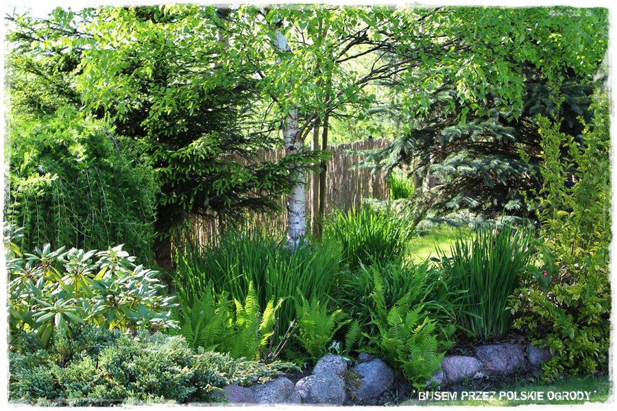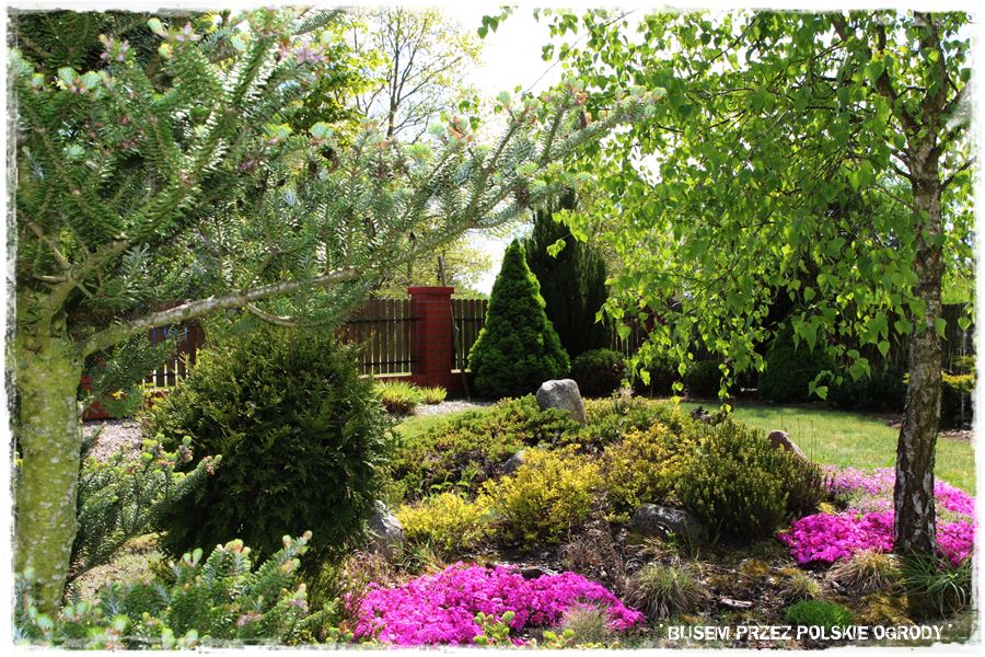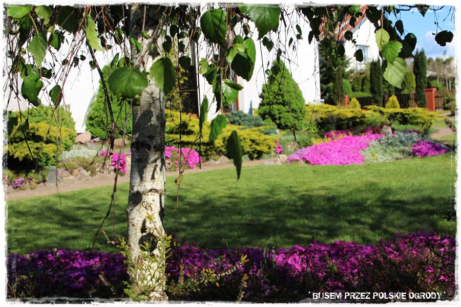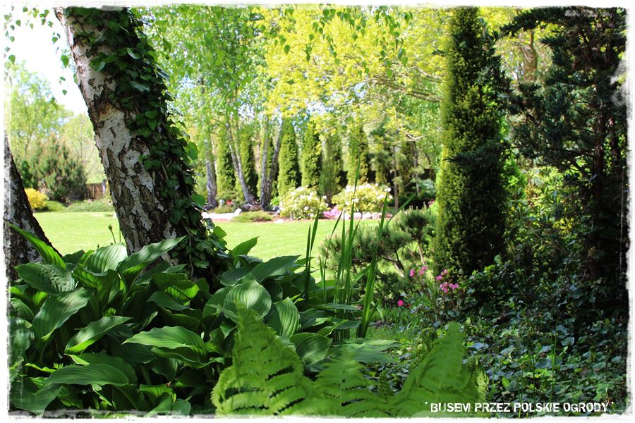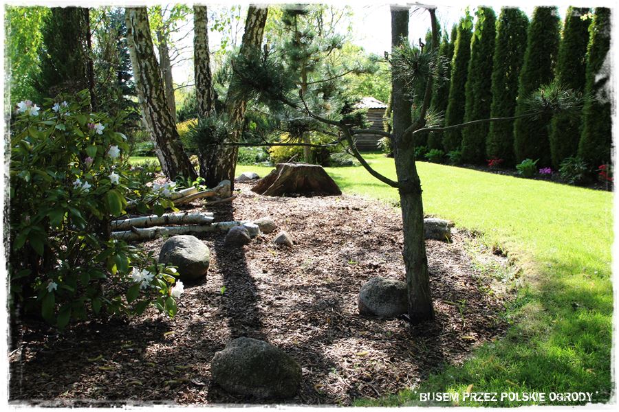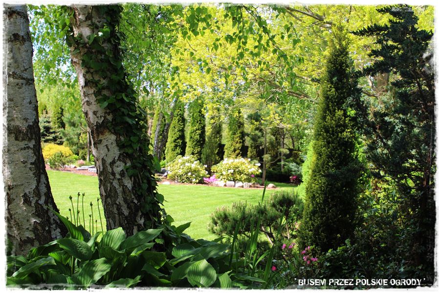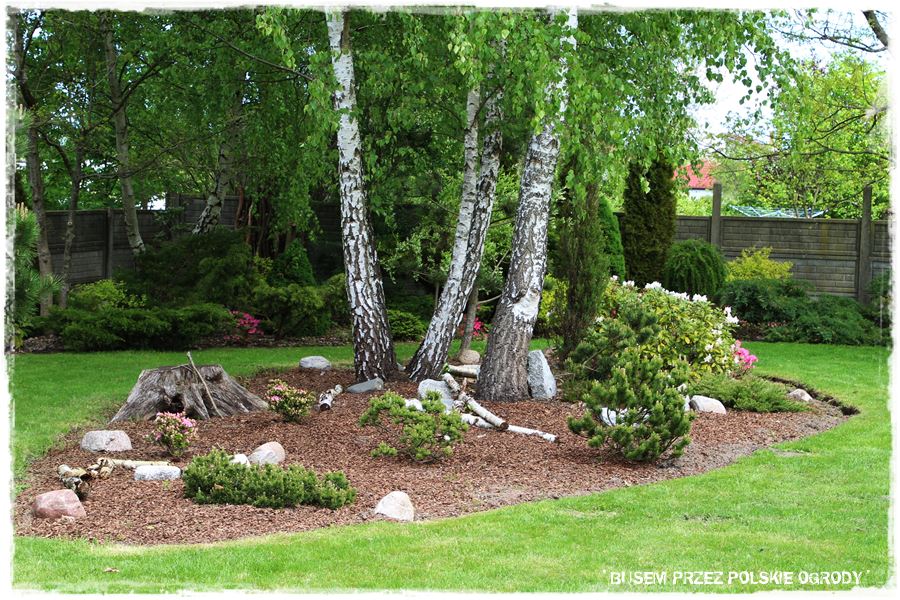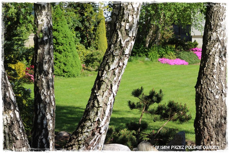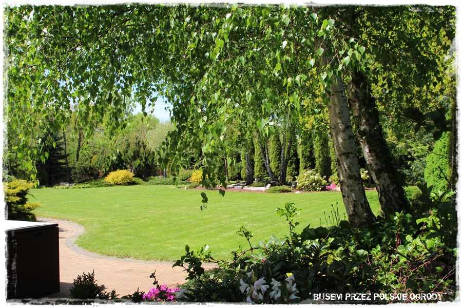 A skoro jesteśmy przy brzozach, to wspomnę, że jest ich w tym ogrodzie dużo, luźno porozmieszczanych po obrysie działki.