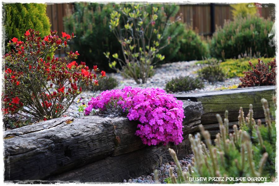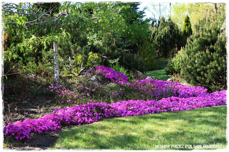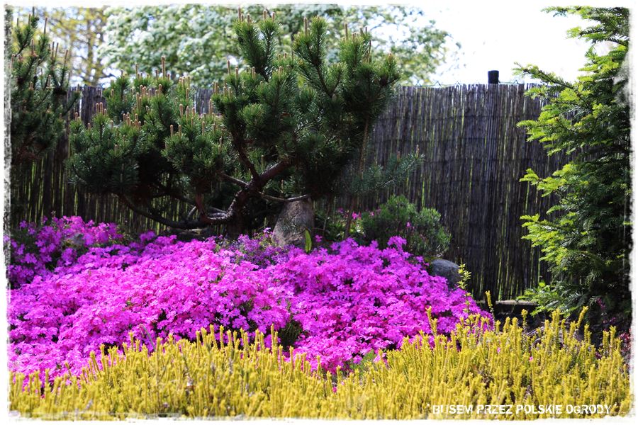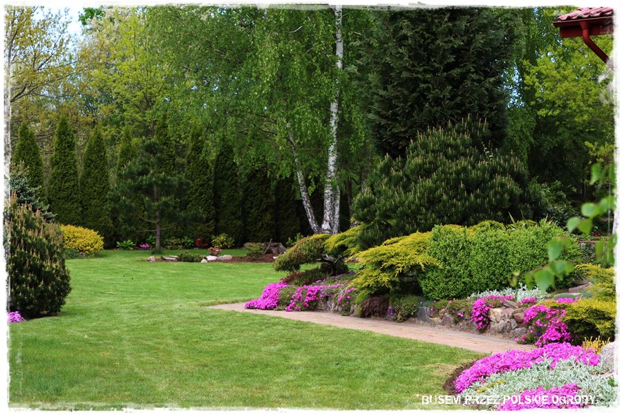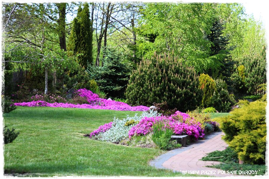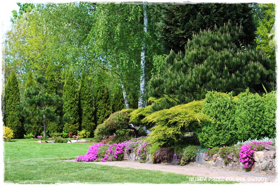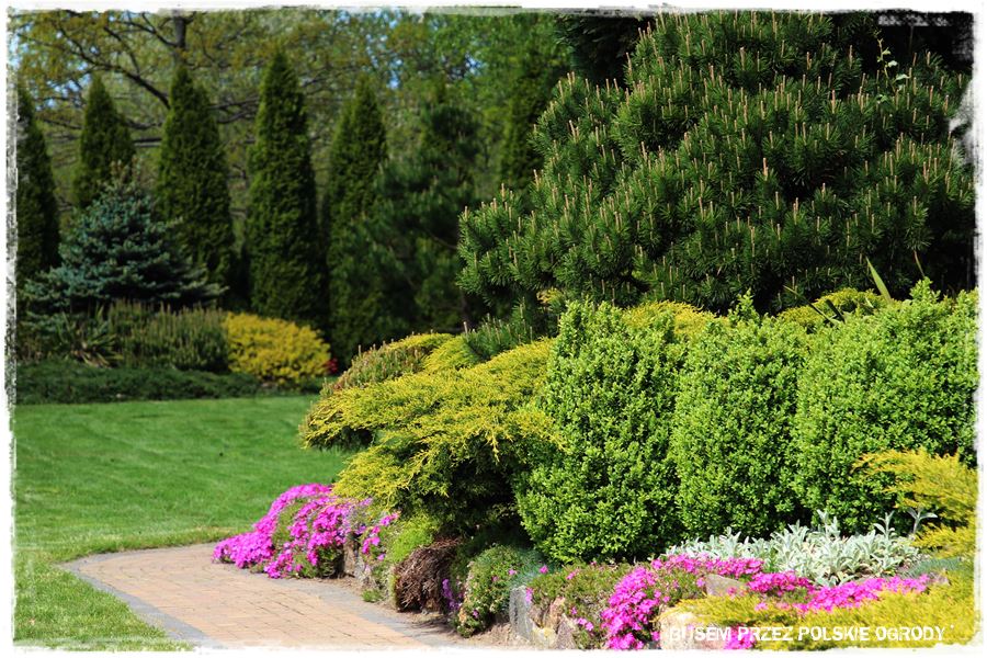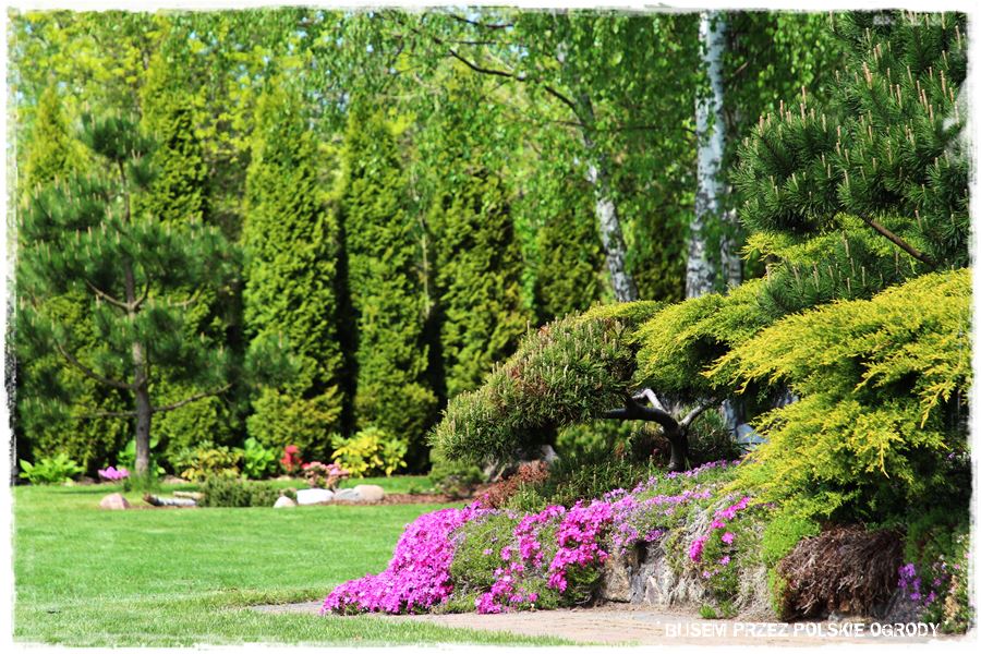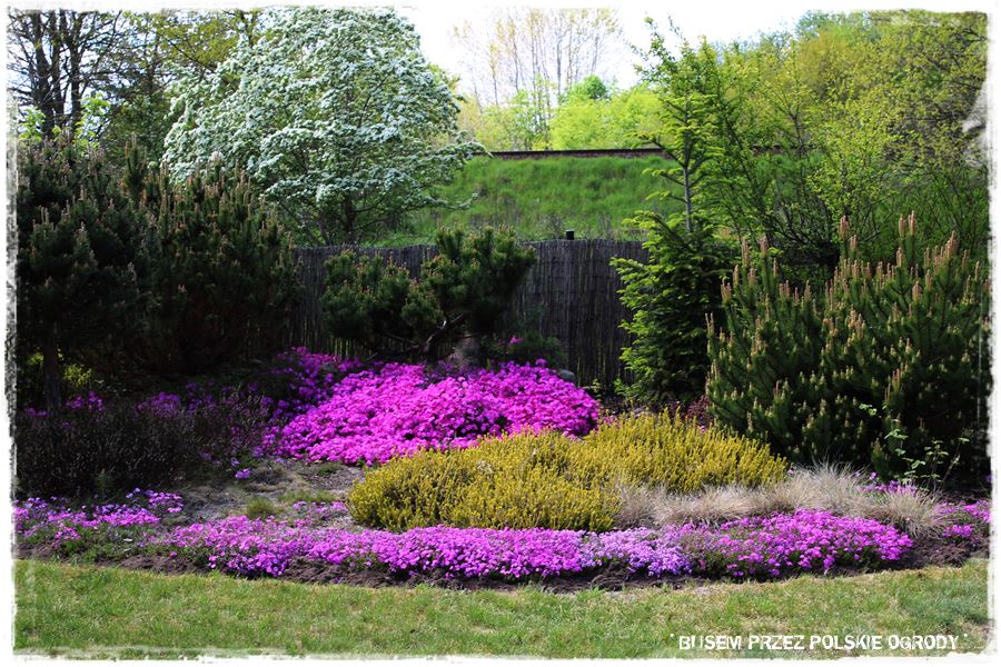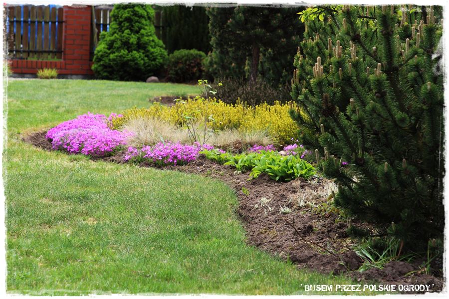 Warto stawiać na rośliny iglaste, które zimą stanowią trzon ogrodu, ale również przeplatać je roślinami kwitnącymi, tak jak chociażby floksy, które wiosną pięknie zdobią cały teren.