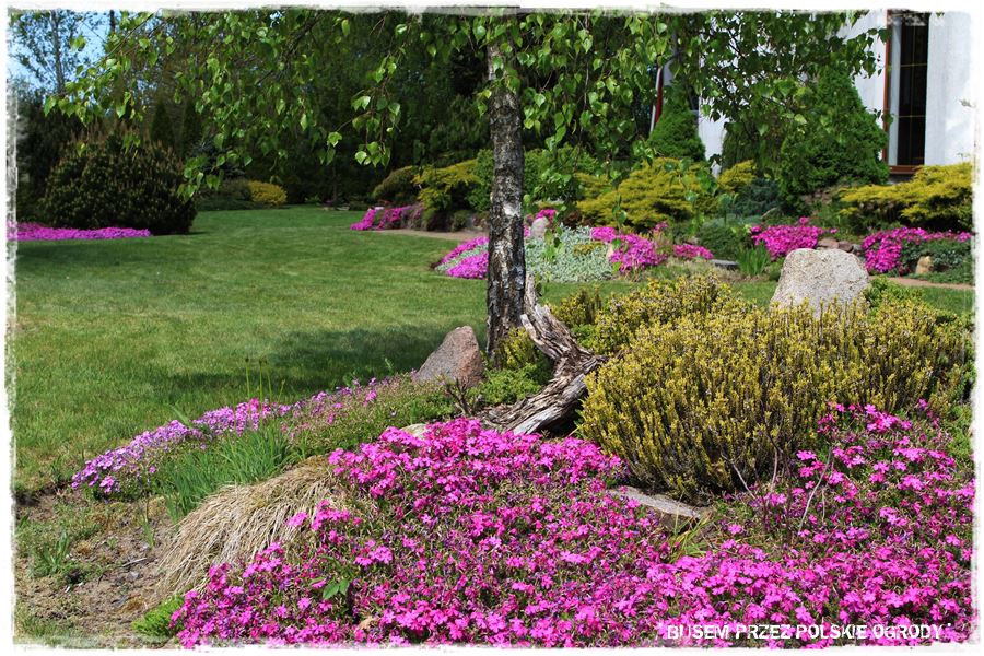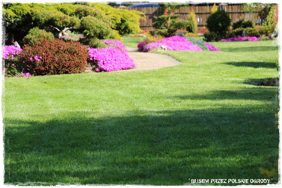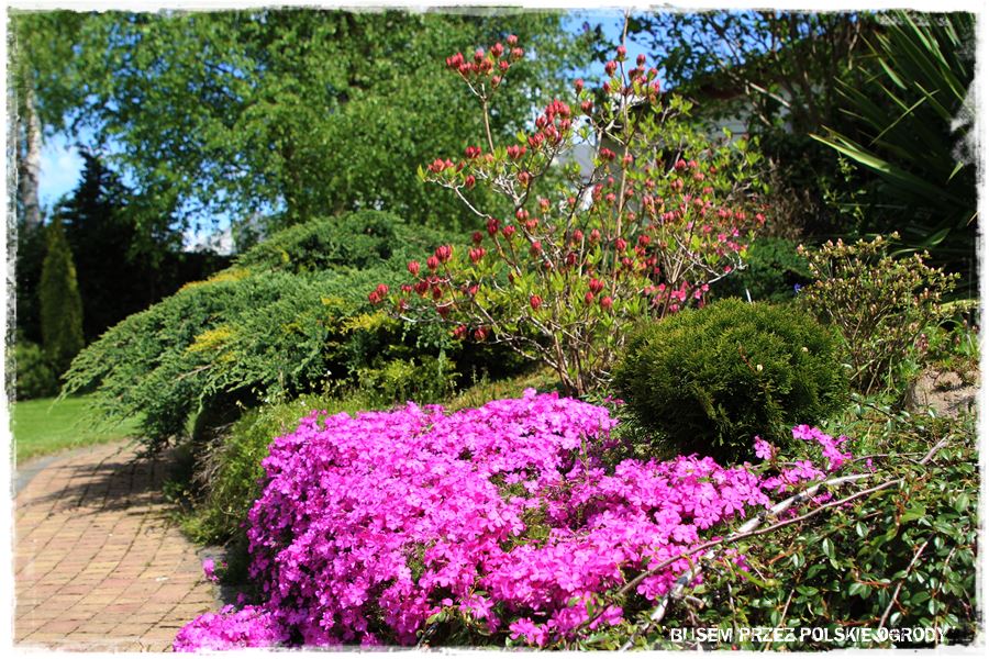 Jednak prawdziwą ozdobą ogrodu są wszechobecne floksy, które tworzą duże plamy na rabatach,