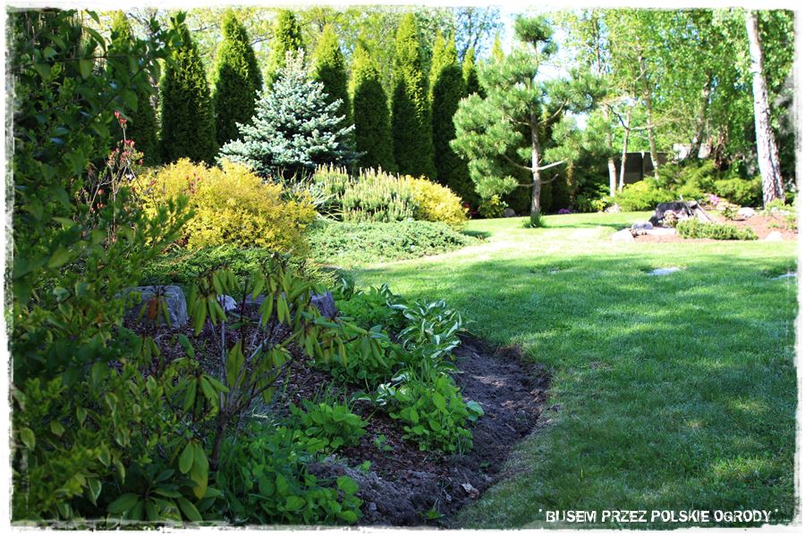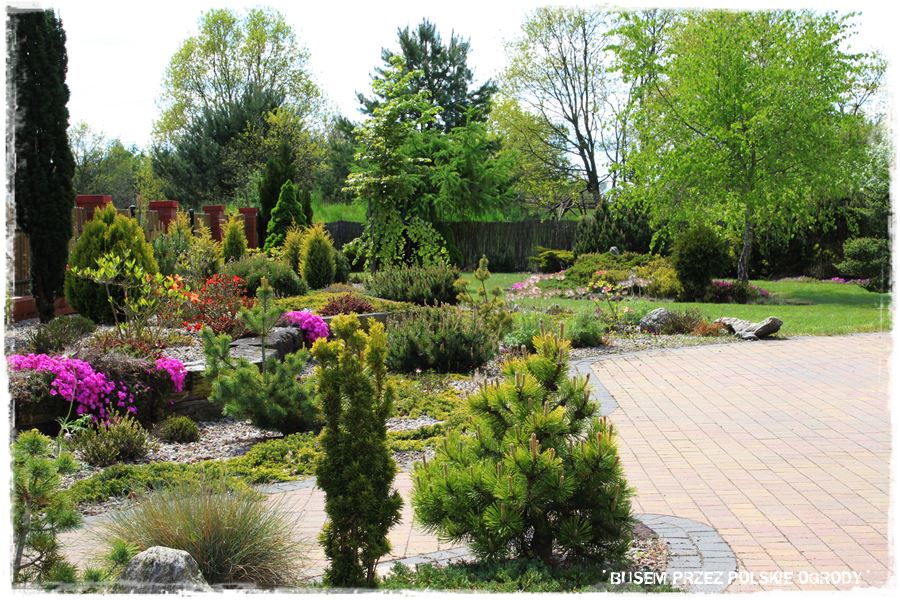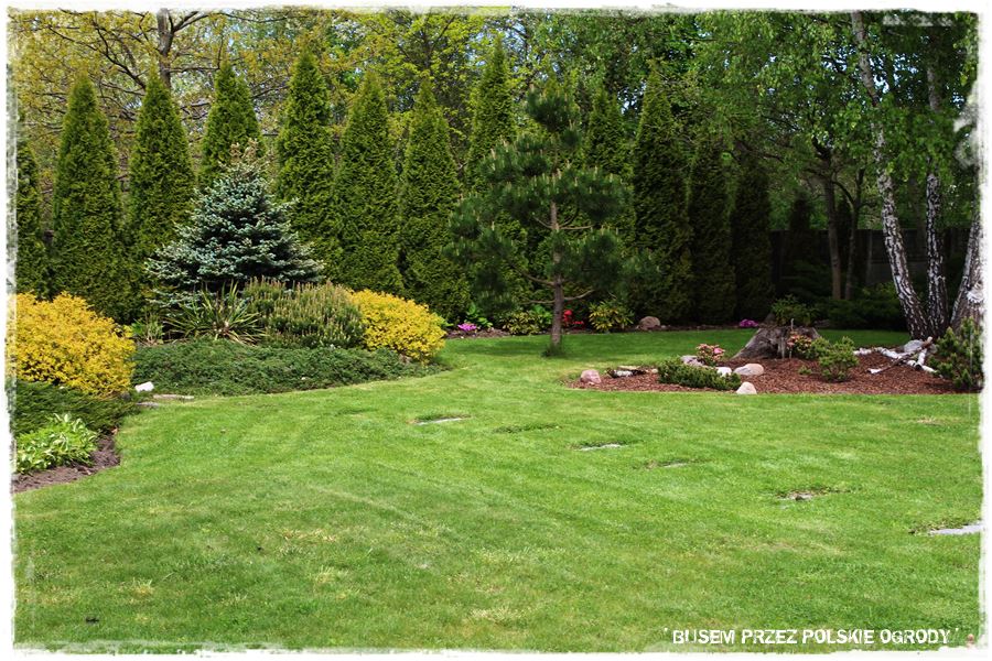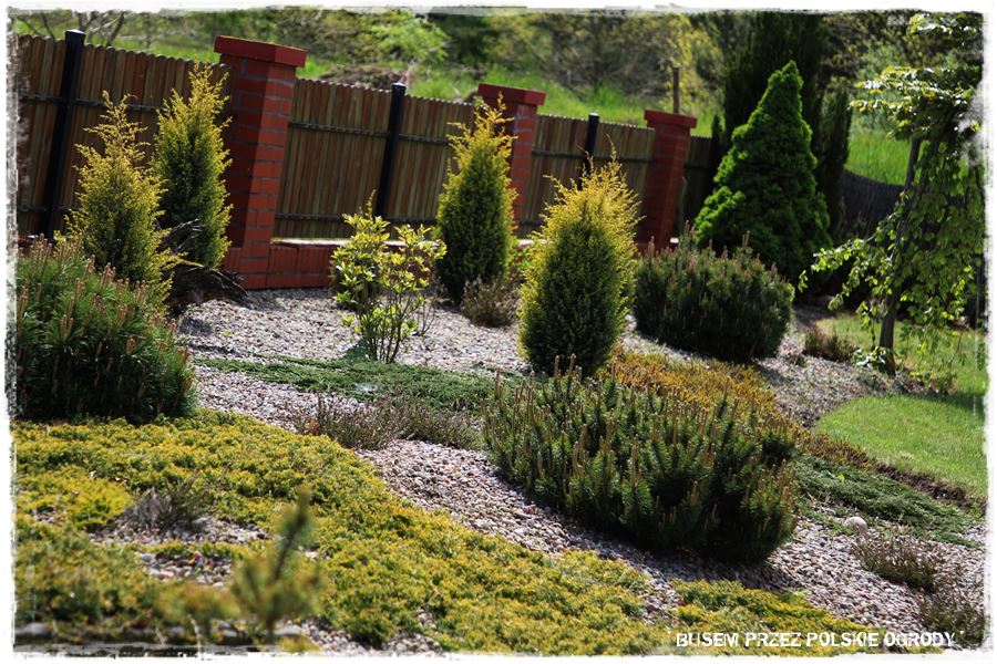 W rabatach i całym ogrodzie mnóstwo jest roślin iglastych, przez co ogród zimą, z pewnością nie pustoszeje.