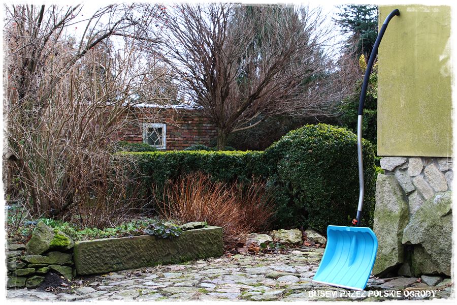 łopata do śniegu od marki Gardena, która czekała w gotowości na wypadek odśnieżania