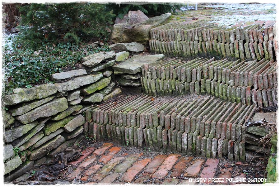 Murom i budowlom kamiennym, kroku w tym ogrodzie dotrzymuje stara, porozbiórkowa cegła i dachówki, z których wykonane są kolejne, imponujące budowle.