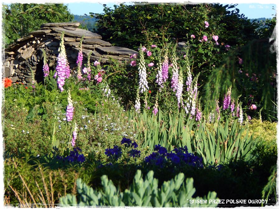 Muszę jednak zdecydowanie wspomnieć o kamiennych murach. Bo skoro zdecydowałem się aby ten wyjątkowy ogród nazwać ‘ogrodem kamiennym’, to chyba jasne jest, że kamień będzie odgrywał w nim pierwszoplanową rolę. I tak faktycznie jest, choć jak za moment zobaczysz, jest to kamień wyjątkowy. A dokładnie to wyjątkowe są konstrukcje, które z niego powstają. Zresztą myślę, że nie powstydziłby się ich niejeden murarz, budowlaniec, czy profesjonalny wykonawca ogrodów. Tymczasem jak się okazuje te kamienne budowle są dziełem Właścicielki ogrodu, drobnej kobiety, która własnymi rękami, bez specjalistycznego przygotowania, samodzielnie je zaprojektowała i wykonała. Co więcej zrobiła to z odpadów czy zwykłych kamieni zbieranych na okolicznych polach. Dodam tylko, że to taka lokalizacja, z dużą ilością kopalń kamieni w sąsiedztwie, a zatem takie też okazy zalegają tam na polach, co zresztą na własne oczy widziałem. Pamiętaj, że w tej relacji znajdziesz opis tego, jak takie mury powstają.